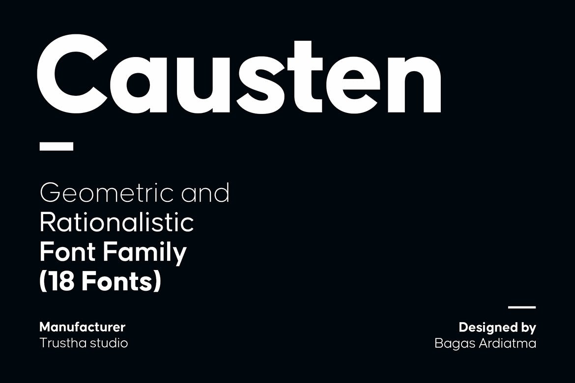 这次老不湿分享的是,高端时尚多用途的无衬线几何Causten字体家族,Causten是无衬线几何字体,在设计每种形式时都保持合理性。使用眼睛的敏锐度,并保持合逻辑,以便在每种形式中保持平衡。因此,它将获得干净,整洁和完美的形状。
