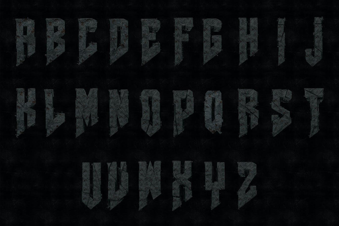 这次老不湿分享的是,时尚高端震撼的变形金刚质感的3D立体字体,Cyber 3D Letters Hi Res-Rust&Metal渲染(2000×1400)。*透明的PNG字母*金属清洁版*铁锈版