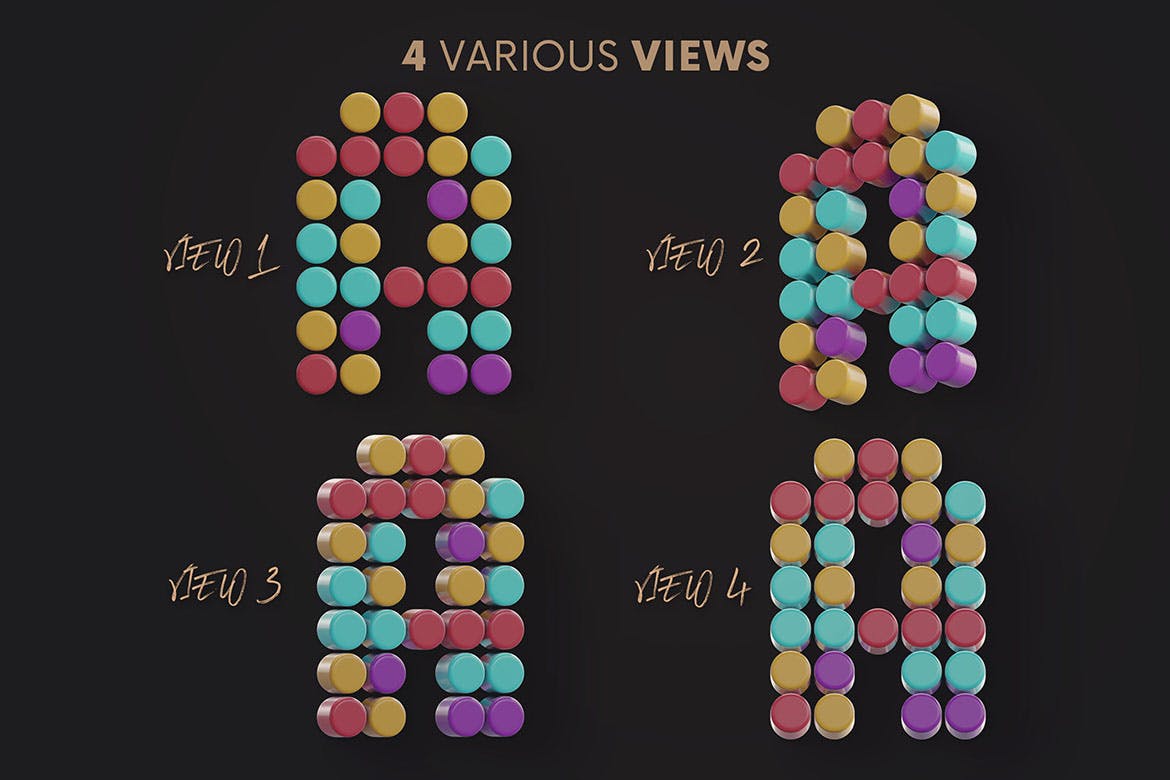 这次老不湿分享的是,时尚高端绚丽3D立体字英文字体大集合,高分辨率和逼真的3D几何图形或彩色圆点字母效果图(3000×3000像素-但字母尺寸稍小)。非常适合您的页眉,海报,广告–任何网络或印刷项目。