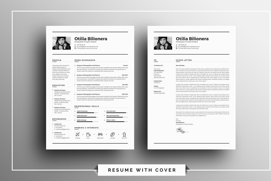 Otilia Bilionera的简历非常干净、有创意、现代、高级 &专业设计的模板。 节省你的时间和金钱,给你的老板留下深刻的印象。一页简历 & 一页的求职信。文本,字体,颜色&所有元素100%可编辑&可定制的。