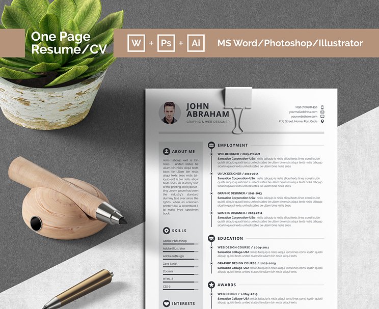 这一块简历是非常干净、有创意、现代、高级和专业的设计模板。 省钱&节省你的时间,用这个来打动你的老板吧!