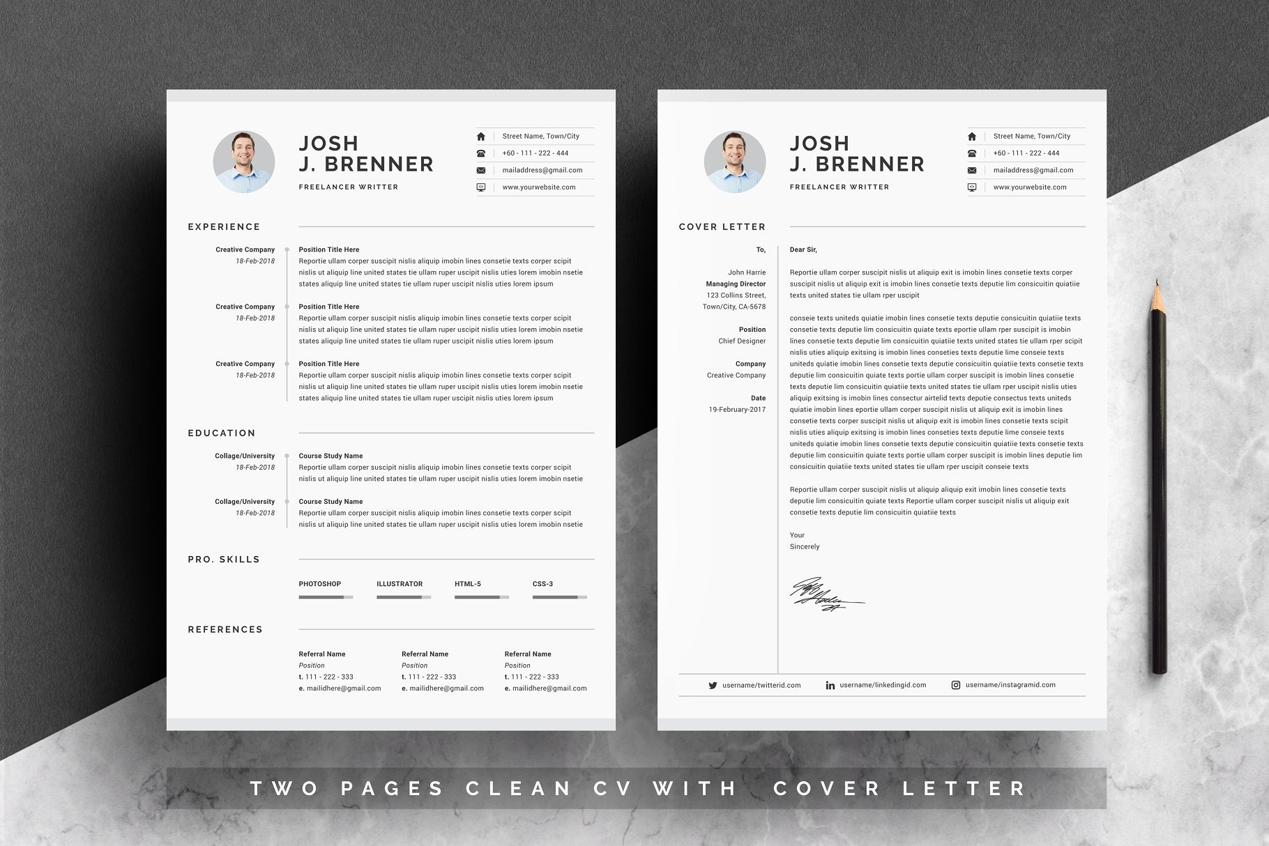 这款模板能帮助您在申请您梦想的职业时留下持久的印象。我们的目标是复杂和优雅的现代扭曲,结合一个深思熟虑的设计,为您的所有文本内容提供足够的空间。