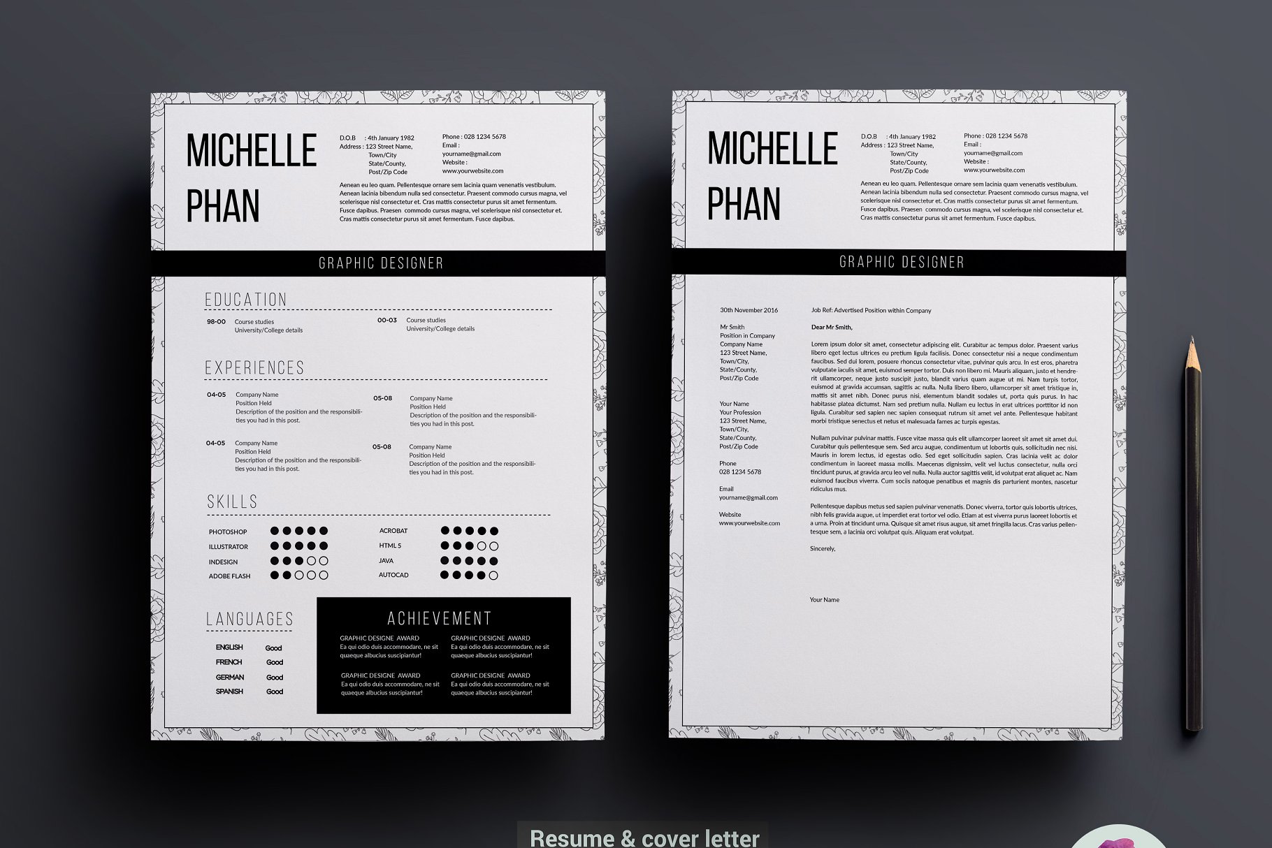 这份优雅而专业的简历将会帮助你引起别人的注意!该套装包括一个漂亮的花卉主题的简历样本、求职信和推荐信。这个模板很容易改变颜色,布局和字体,以适应您的需要。