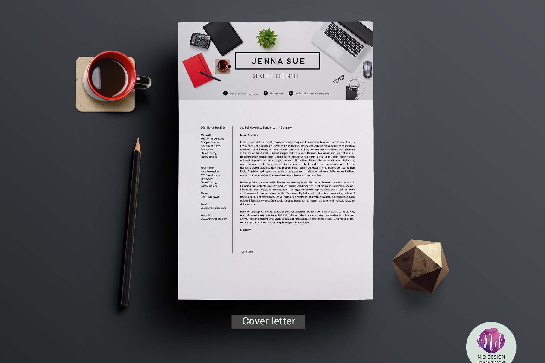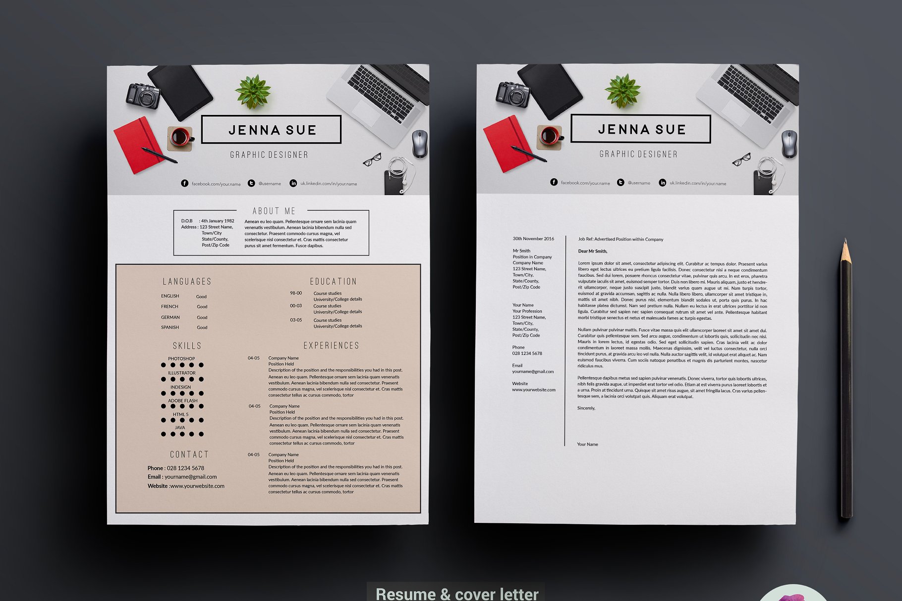 这个优雅和专业的简历包将帮助你得到注意!这个包裹包括一个简历样本、求职信和参考资料的例子,在一个相当别致的主题里。