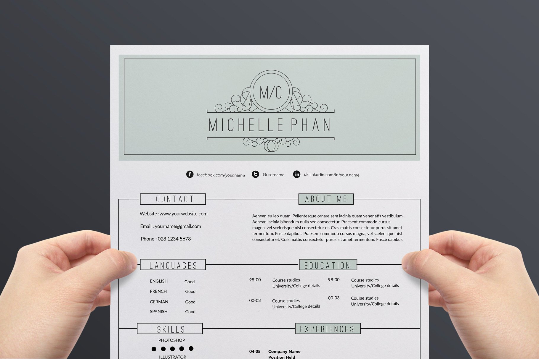 这份优雅而专业的简历将帮助你获得关注!该软件包包括一个2页的简历模板、求职信模板在一个漂亮的、现代化的设计里。这个模板很容易改变颜色、布局和字体,以满足您的需要。