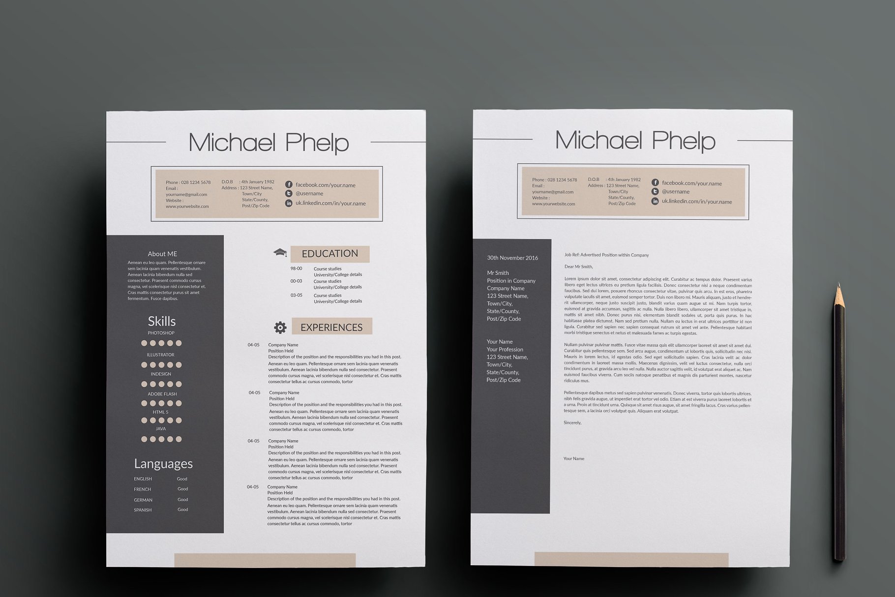 这份优雅而专业的简历会让你引人注目!该软件包包括一个简历样本、封面信和参考的例子在一个相当别致的主题。这个模板很容易改变颜色、布局和字体,以适应你的需要。