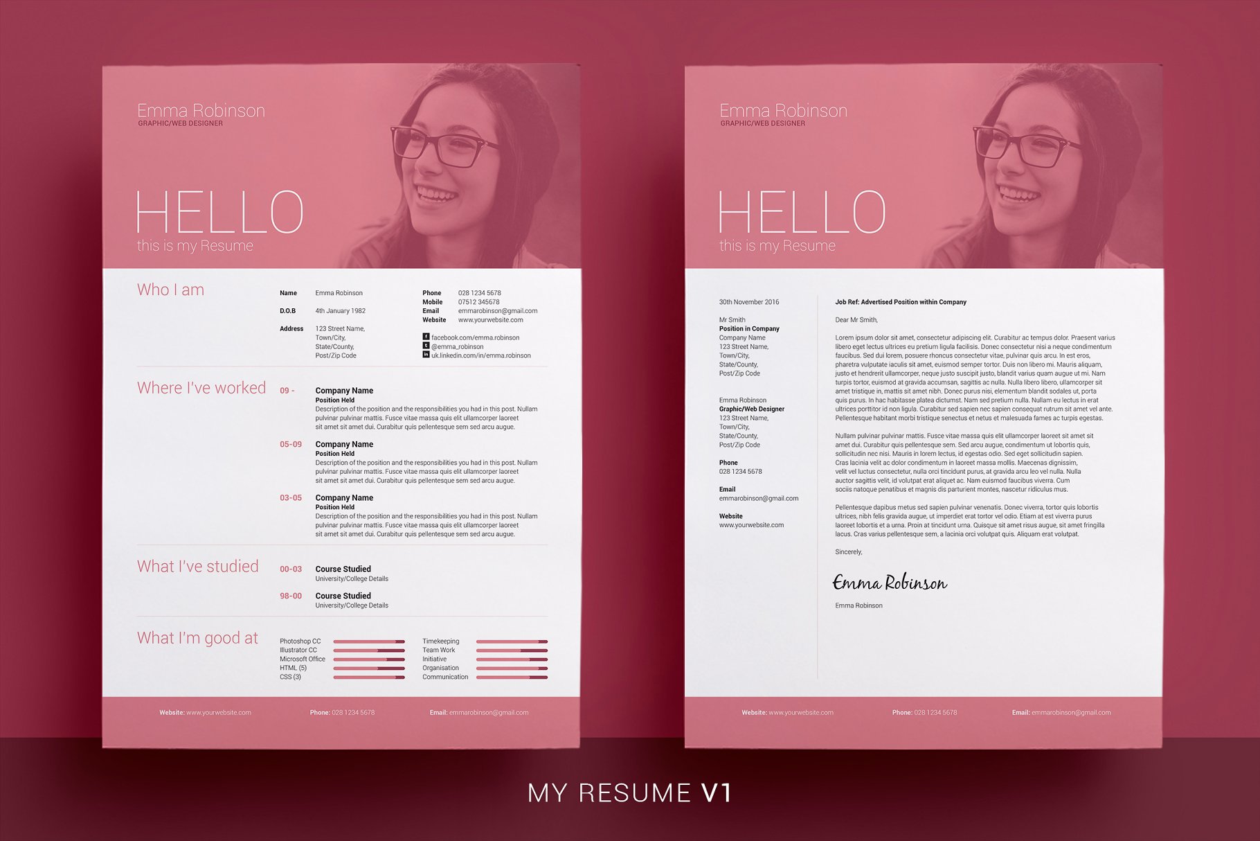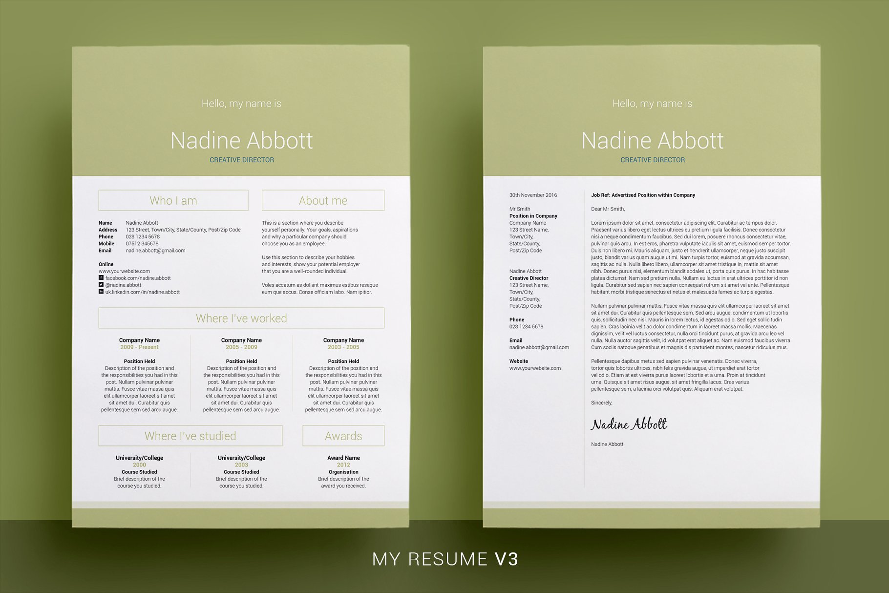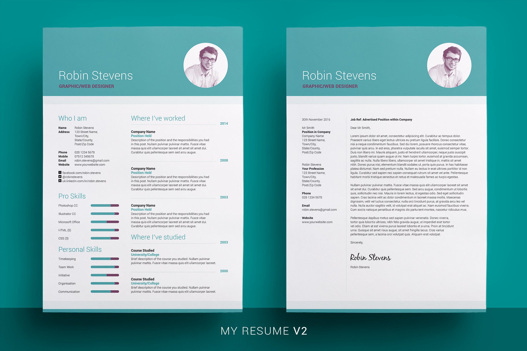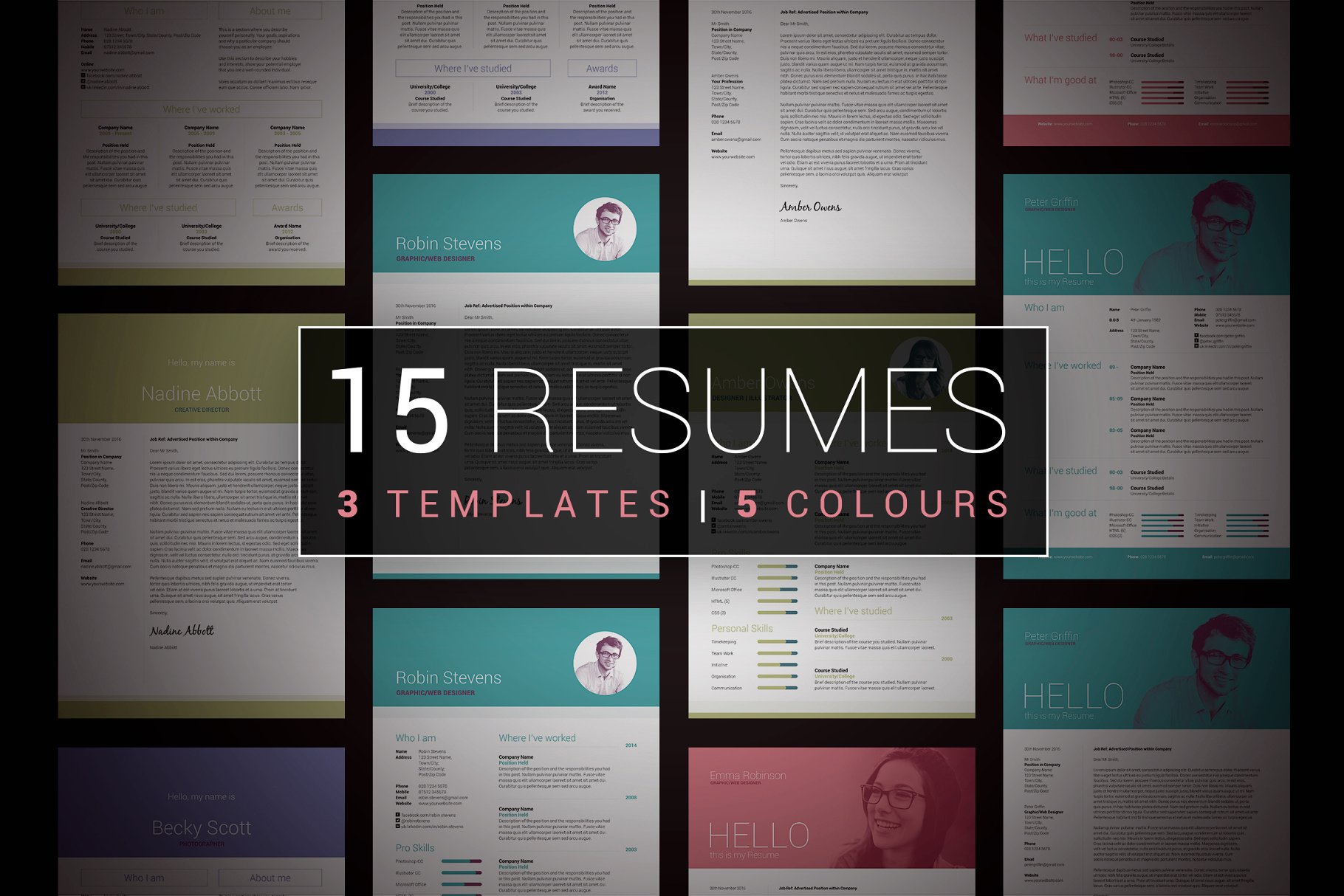 3个简历 &封面信包,专业、干净和简单的设计与可选的照片标题,这些都已经准备好的,你只要添加你的细节,每套简历有5种颜色。