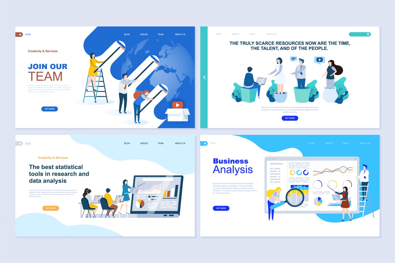 这次老不湿分享的是,时尚扁平化风格的商业应用程序数据分析职业生涯团队合作的海报banner着陆页模板,现代传染媒介例证平的概念装饰了网站和流动网站发展的人字符。