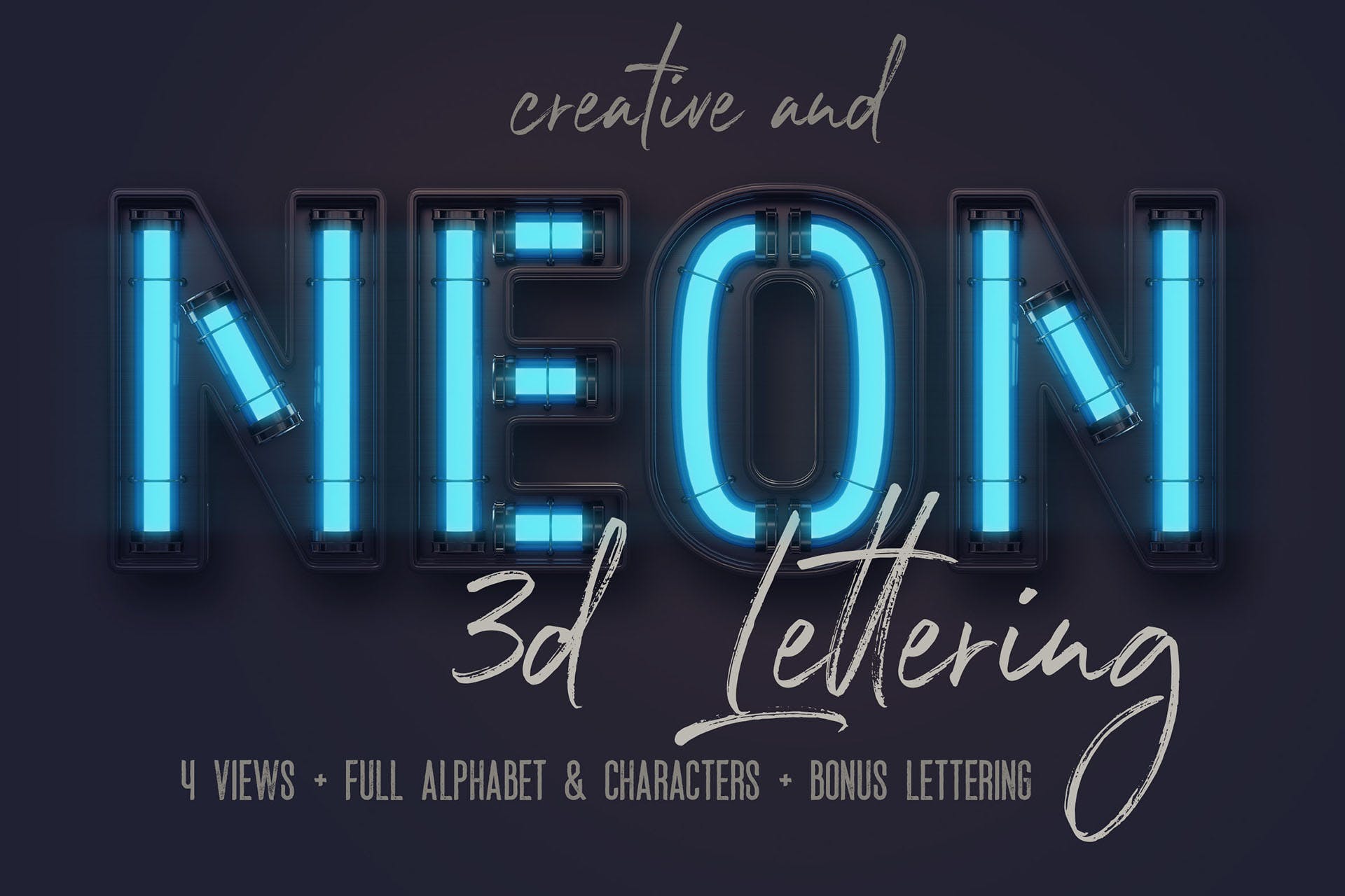 带有霓虹灯+额外图形的未来风格3d字母-视角1