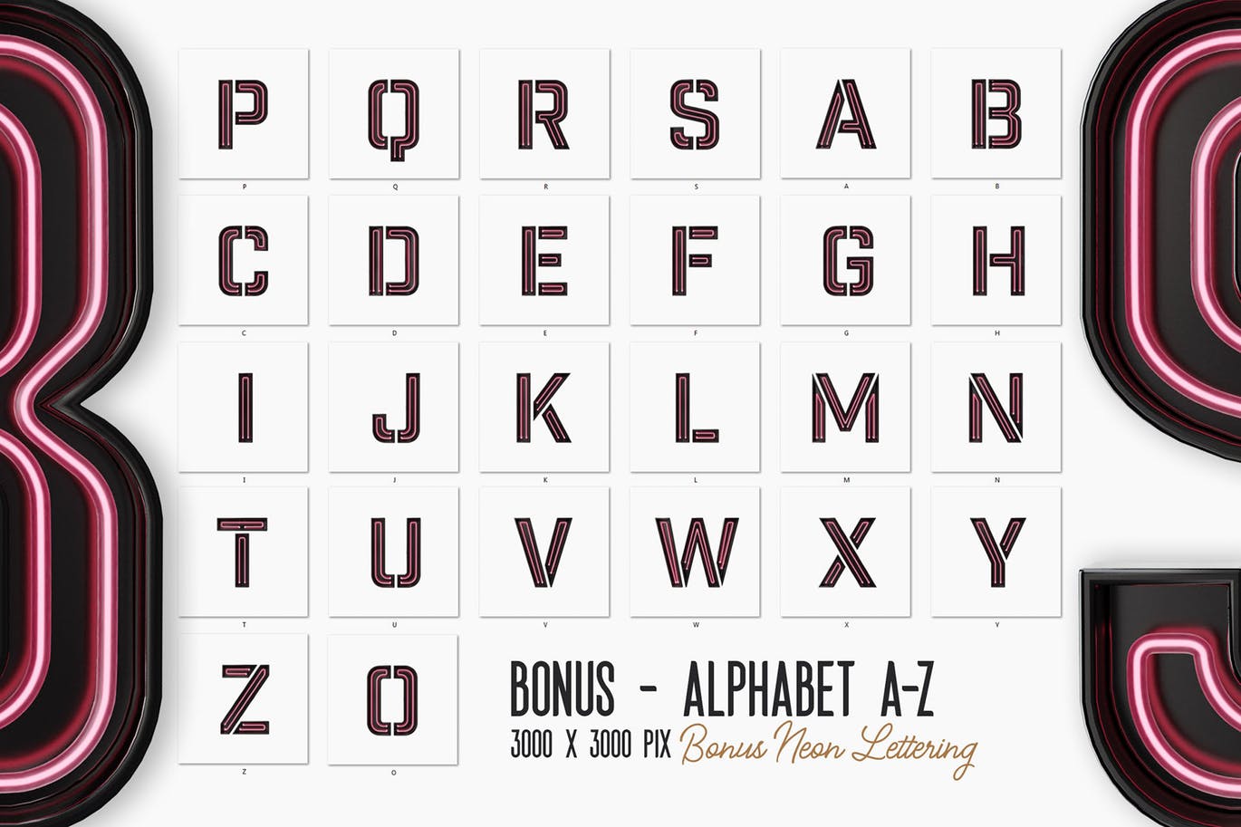 带有霓虹灯的未来风格3d字母-附加字母