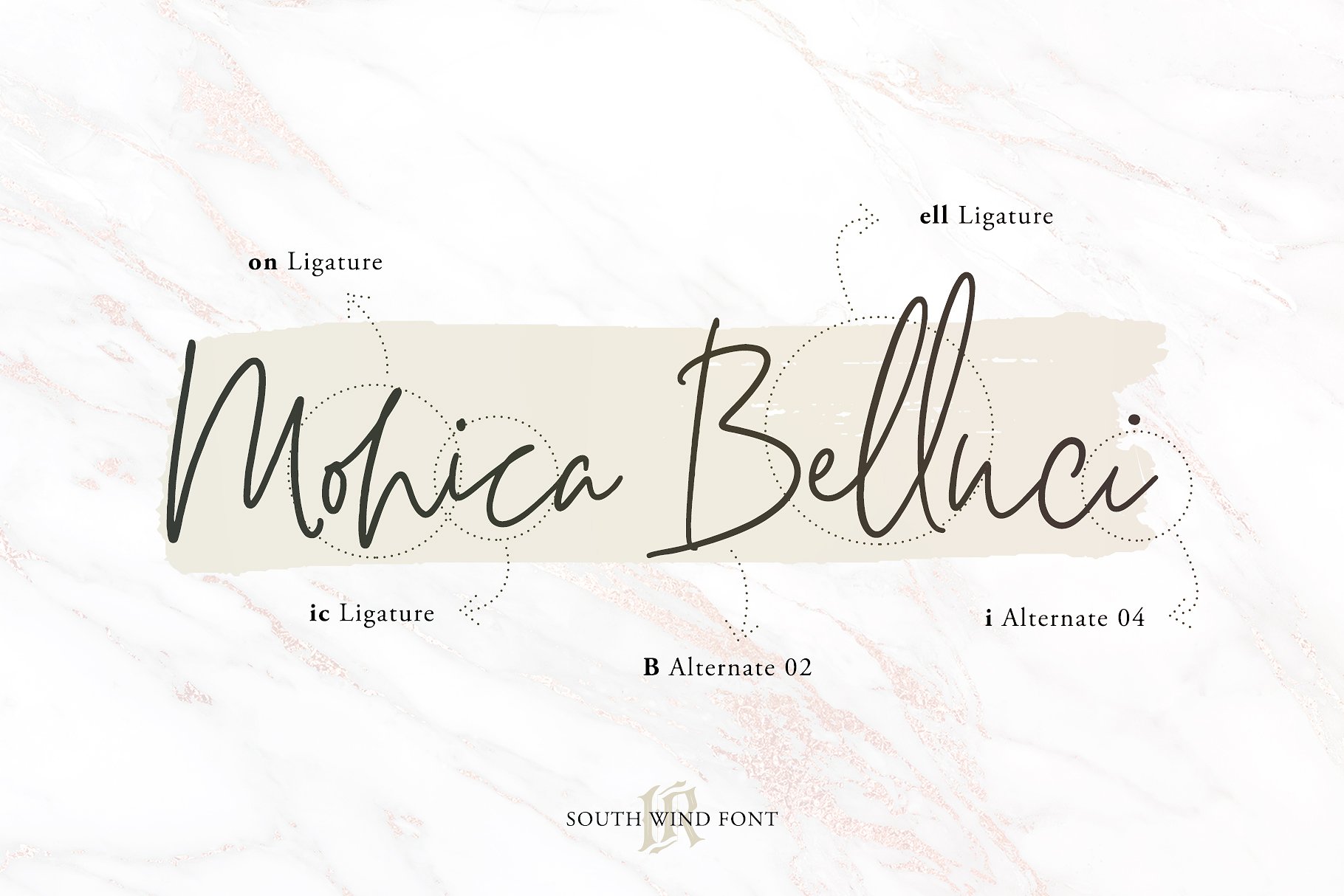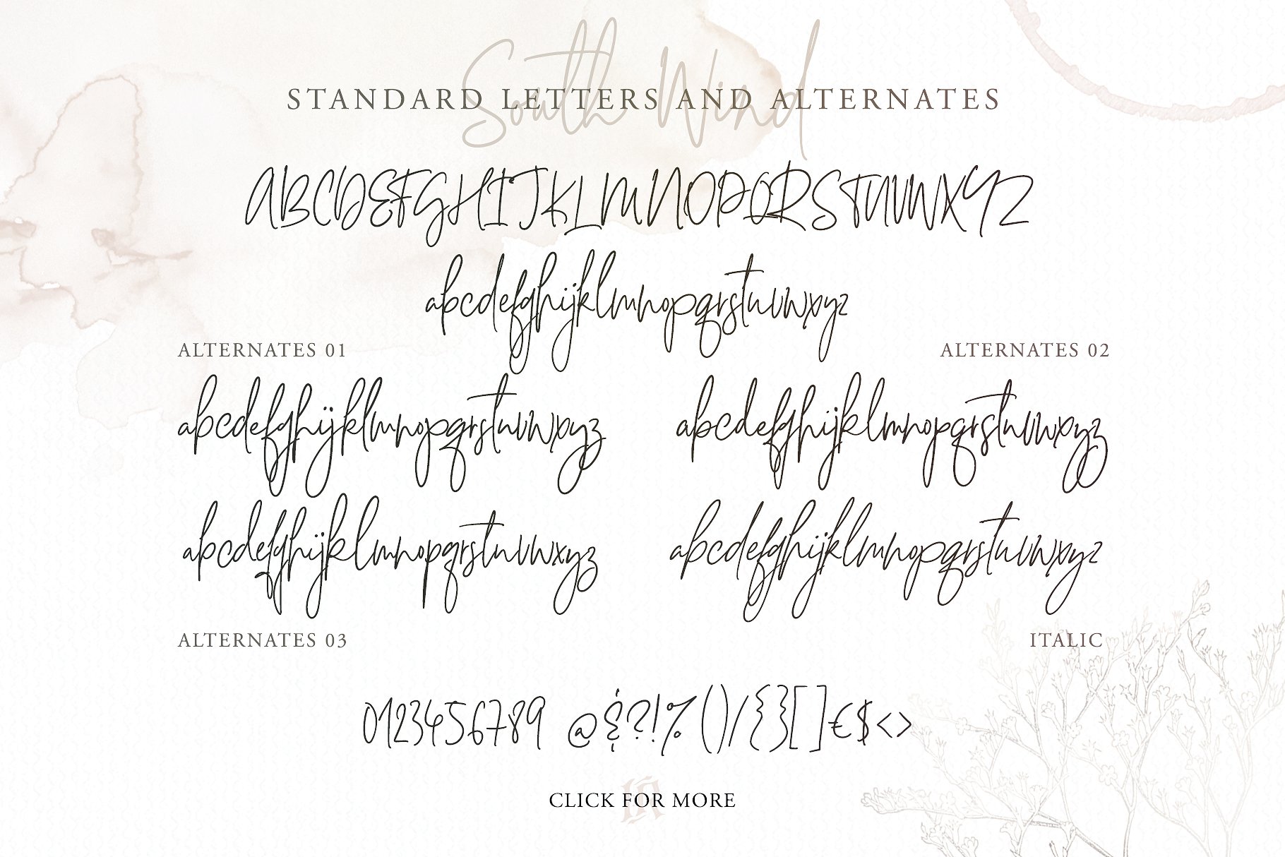South Wind 是一种手写字体,有107种连写形式,大量的替代字符和多种语言支持。是博客网站、instagram、品牌、邀请函、名片、婚礼等等的理想选择。
