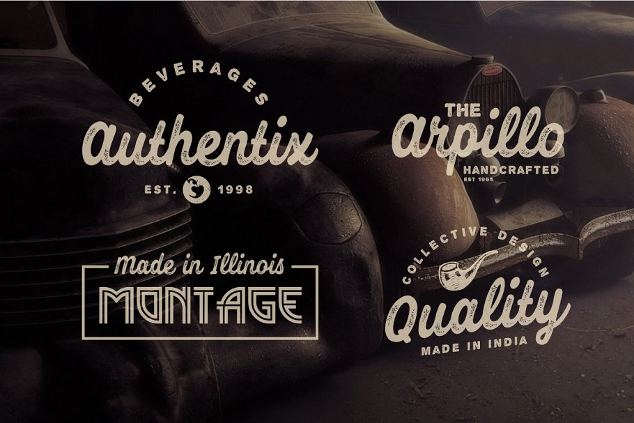 Felisha是一种多用途的粗体字体,既可以用于现代设计风格,也可以用于复古设计风格。Felisha有两种不同的风格:普通的和粗糙的。适用于复古标志、复古风格、徽章、品牌、海报等。