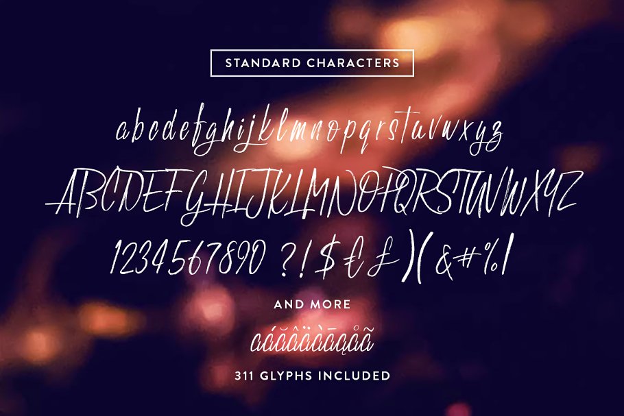 Amazonia Bay是一款手刷字体,带有多语言的支持。 适用于餐厅菜单、贺卡、请柬、婚礼、标题等等。这种笔刷字体提供了一套完整的大小写字符、连写和多语言支持。