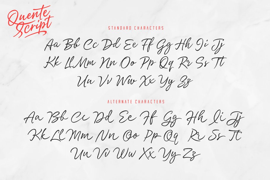 Quente脚本+ Tamigos支持多语言&OpenType功能,可以让你选择一个字符,用于你喜欢和适合的项目,如t恤设计、摄影、邀请函、海报、标志、标题、品牌等。