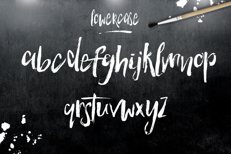 这种字体是一种手绘的笔刷/标记字体,有大量的字符和纹理。附带一个额外的字体文件,带有手绘斜线、破折号。