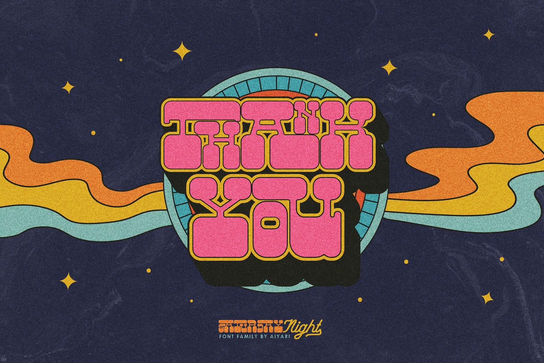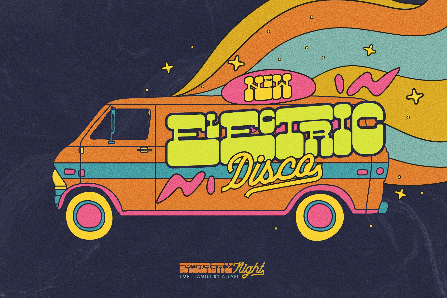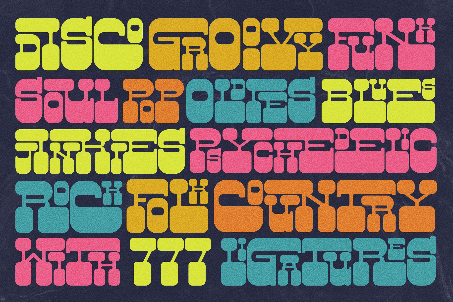 介绍一个新的复古字体家族,拥抱七八十年代的迪斯科音乐。这个字体家庭适用于标题、标志类型、报价、服装设计、邀请、传单、海报、产品包装、书籍封面、印刷报价、封面相册、电影等。