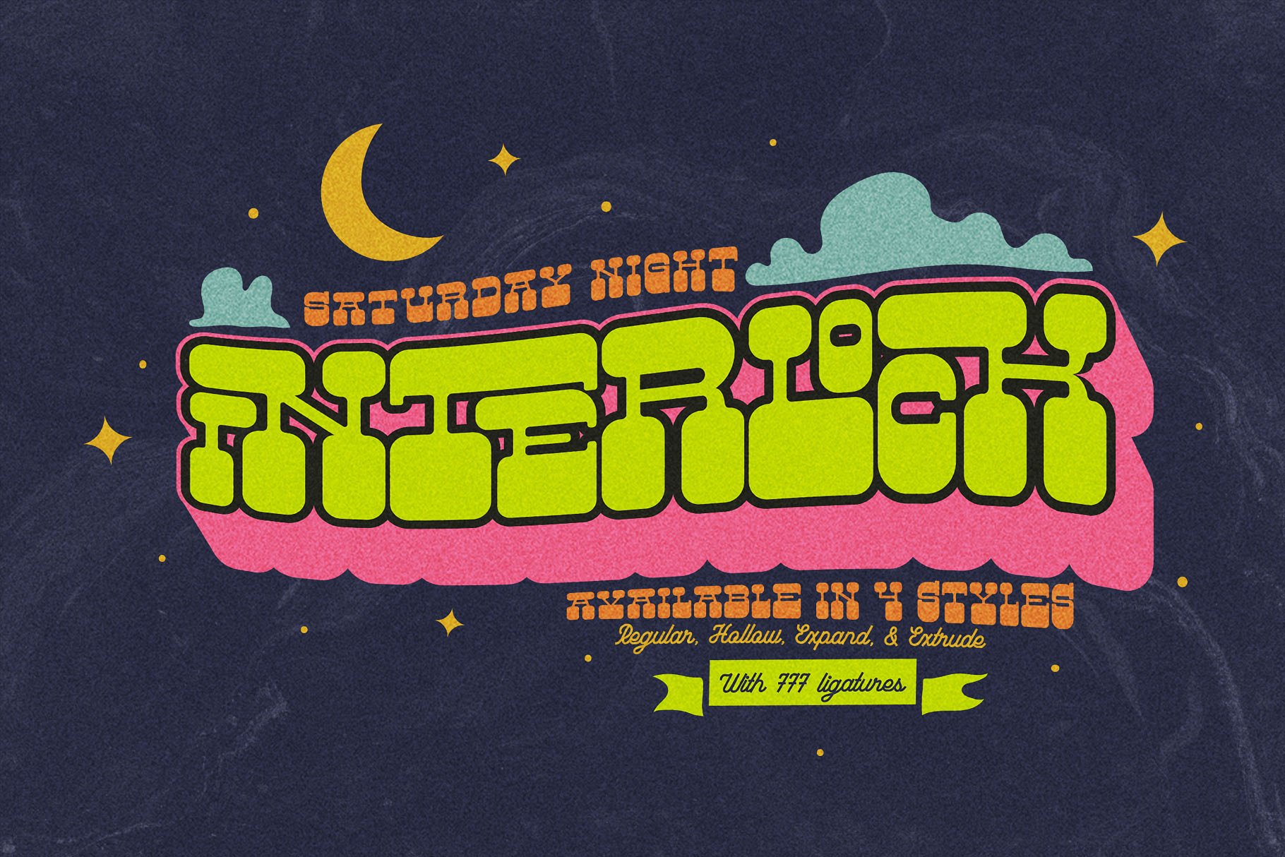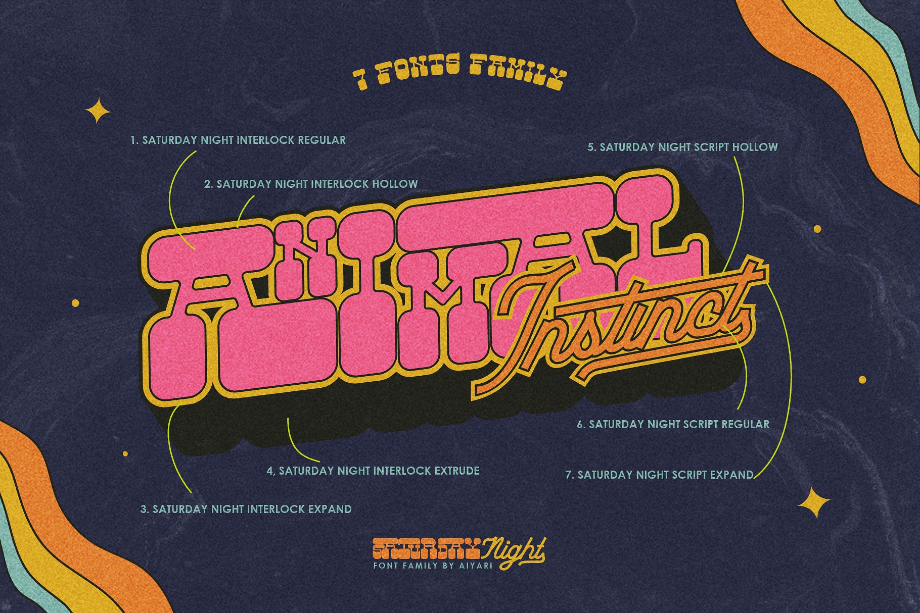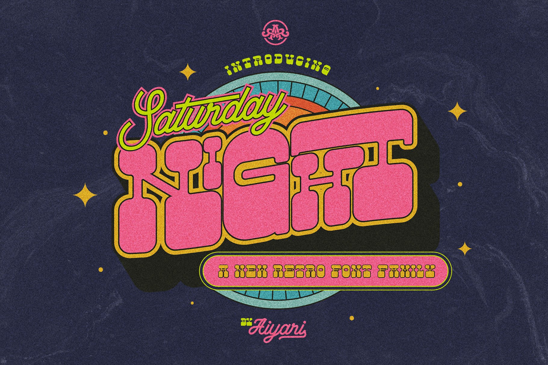 介绍一个新的复古字体家族,拥抱七八十年代的迪斯科音乐。这个字体家庭适用于标题、标志类型、报价、服装设计、邀请、传单、海报、产品包装、书籍封面、印刷报价、封面相册、电影等。