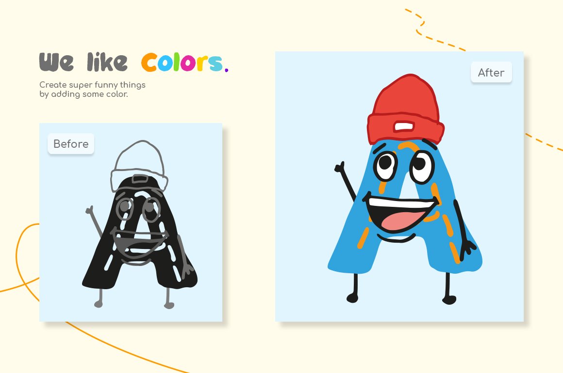 - 这不是分层字体家族,因此您可以轻松使用。只需点击字母工具并添加一些颜色即可。