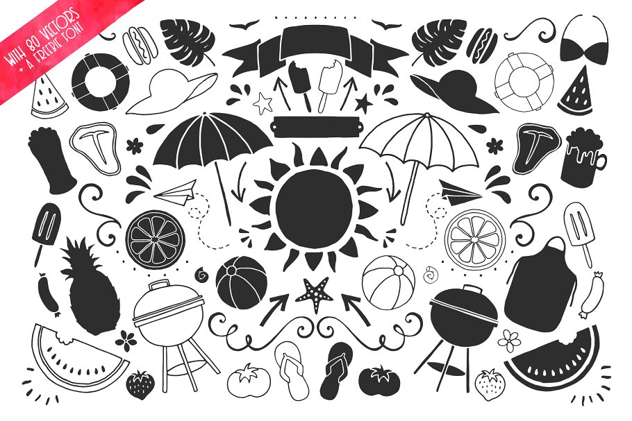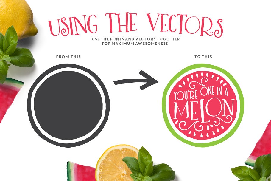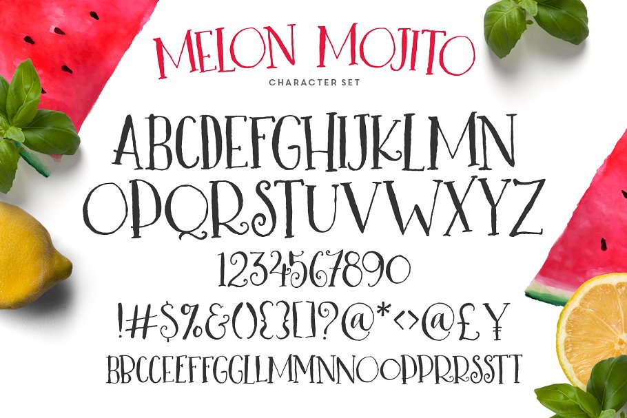 寻找一个有趣的字体,和一些可爱的图形来配合它? Melon Mojito是一种傻傻的、多汁的字体,它由一个毛笔字笔尖构成,给人一种不规则的感觉,而且它还有一个你很喜欢的手写字体!