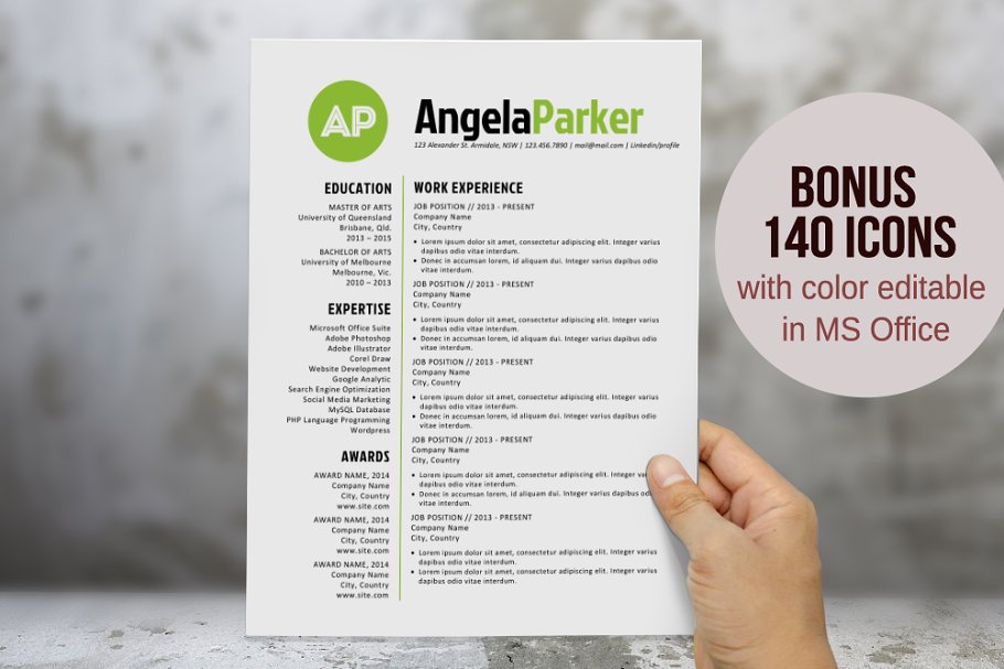 这是一个非常容易编辑简历和覆盖模板的MS Word (.docx)。如果你不想处理那些复杂的矢量程序来创建或刷新你的简历,考虑我们的简历模板之一。它是简单和优雅的。