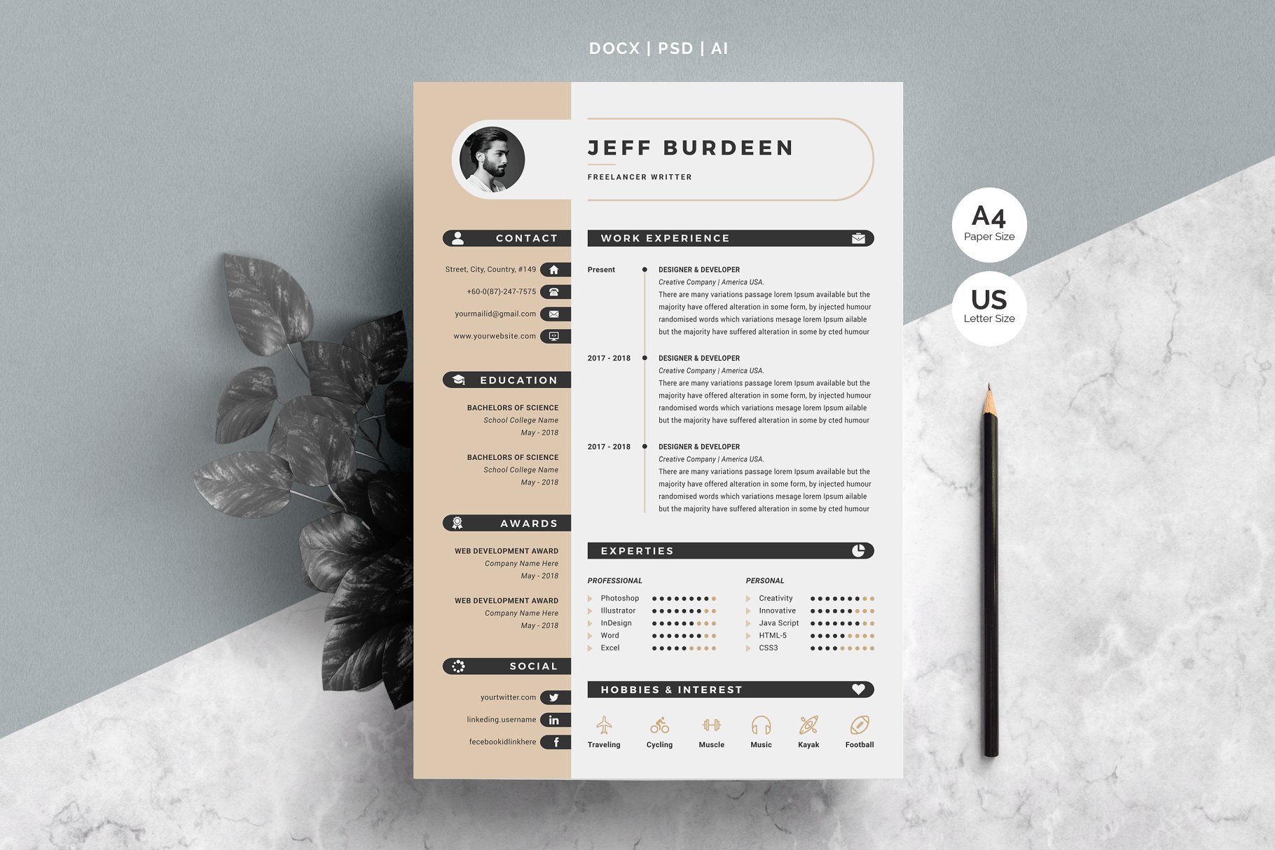 我们创建模板,帮助您在申请理想职业时留下持久的印象。我们的目标是成熟和优雅与现代的扭转,结合深思熟虑的设计,为您的所有文本内容提供足够的空间。