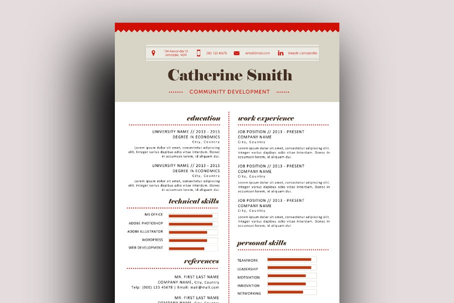 想要改变你的旧简历吗?这是我们设计精美的简历模板之一。我们将向您展示这个非常容易编辑的简历,并为MS Word (.docx)提供模板。完全用MS Word设计,完全可以用程序编辑。