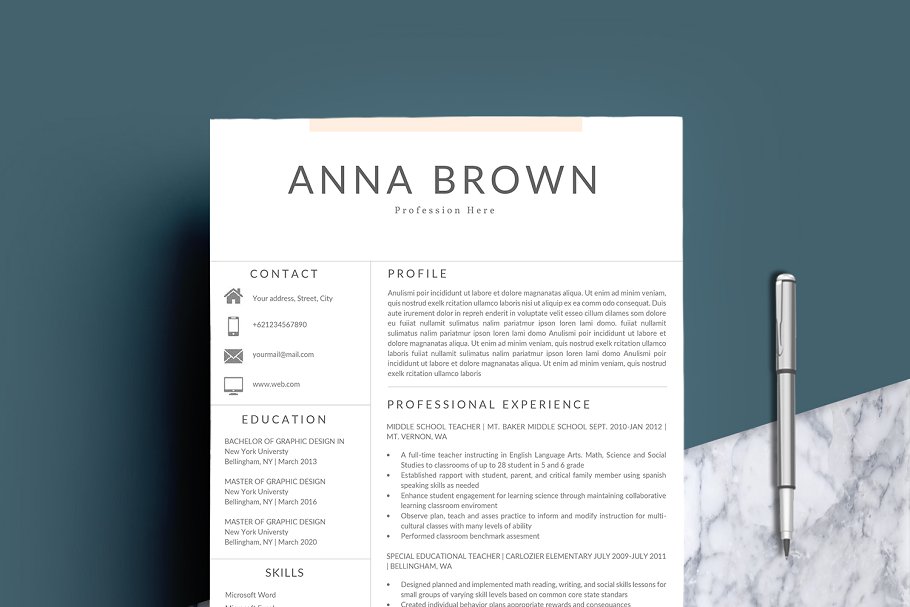 您好,感谢您查看这个项目!Word、Instant Download CV模板美国信件和A4模板包括PC和MAC兼容微软Word。