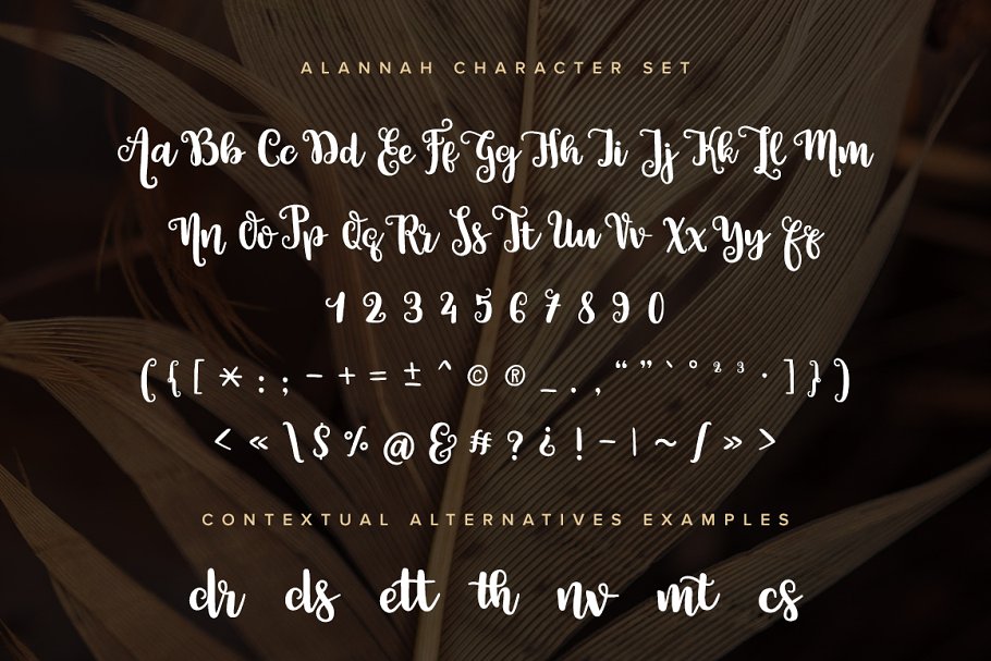 看看这款Alannah的字体,Pixelbuddha的第一款字体! 主要目标是为字体带来好玩的乐趣和真正的手写外观,可以添加到您的任何项目,使它有迷人的感觉。Alannah是一个深思熟虑和专业制作的字体,提供了一个巨大的国际语言支持和丰富的开放类型功能,包括各种上下文交替和连接。