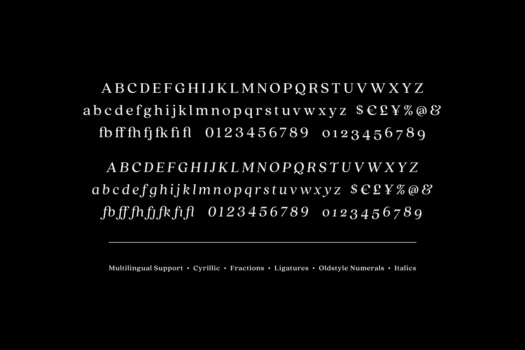 这是一款温暖的字体,高x高度和中等对比度提供了一个愉快的阅读体验。这种设计可以增加魅力,使它作为一个庄严的显示字体。整体流畅的外观,会给你的设计带来很好的展示噢!