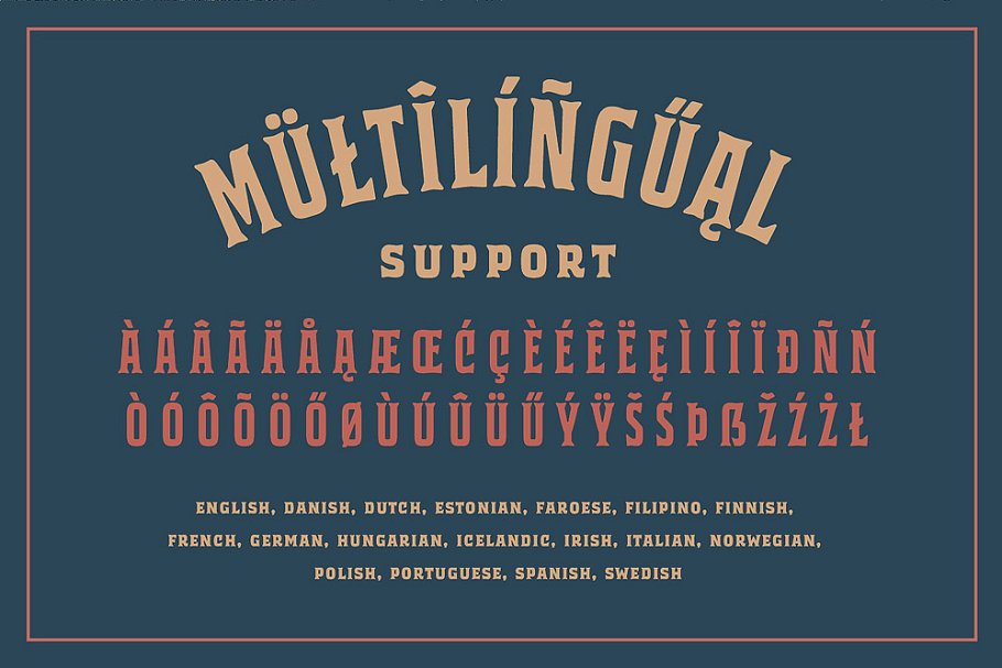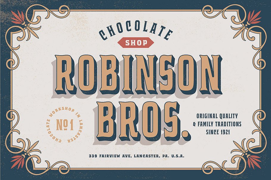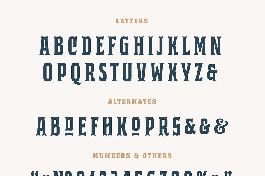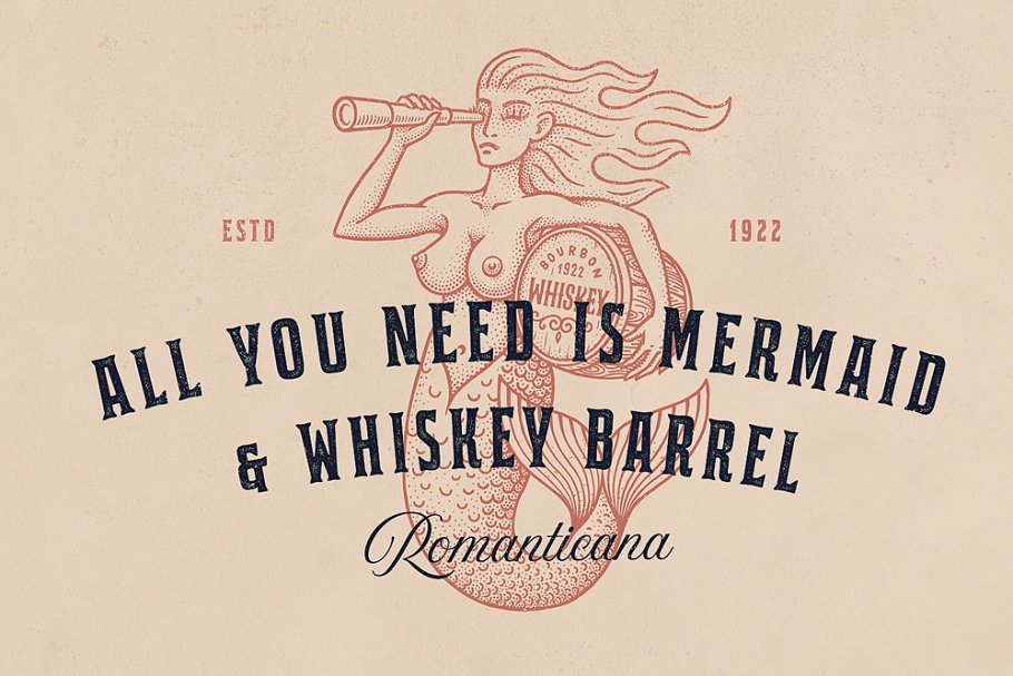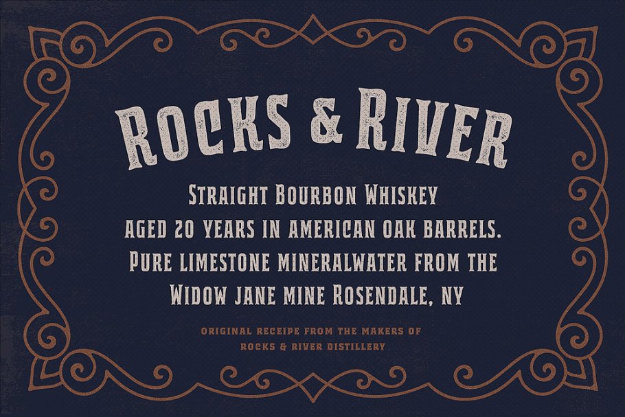这款字体灵感来自经典的威士忌标签和歌唱绘画。强大的衬线,全大写字母看起来很好,可以用在古董标签、标志、包装、标题和文本块。 它有8种不同的变化,扩展了你设计东西的可能性。