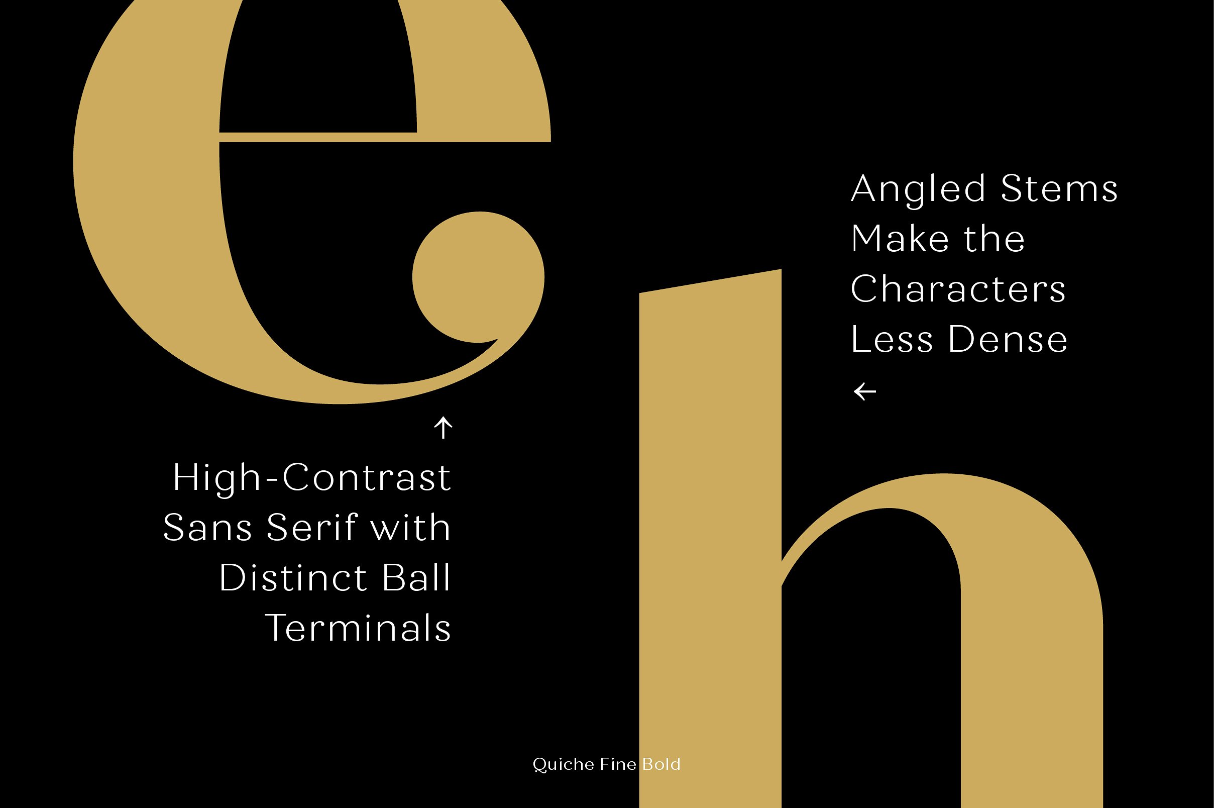 该设计受到了serif didone风格的影响,其特点是优雅和极厚/薄,但它删除了serifs,以实现独特和现代的表达。高对比度的风格散发出成熟,而球终端通过软化整体外观来平衡它,使它感觉更接近。