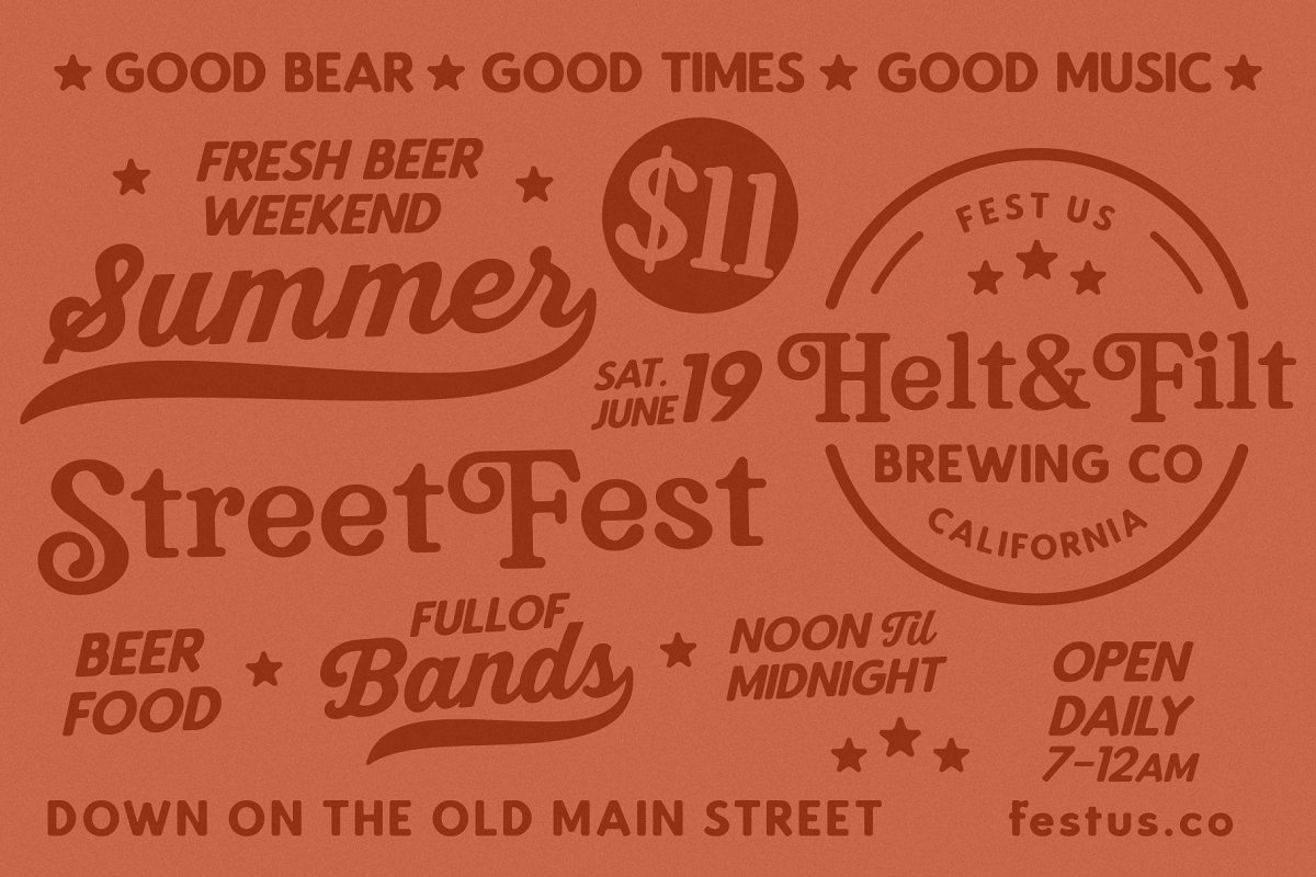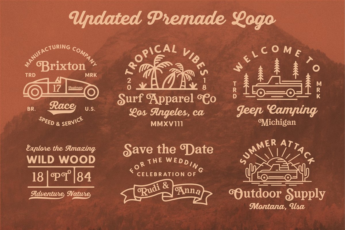 此套装包括8种字体,它们具有不同的类型(Serif,Sans,Script)和两种样式(Clean和Press)。经过精心设计,可以创作出精美的印刷作品。此外,该套装还包含一组用于Adobe Illustrator(CS&CC)和包括手绘平面的16个可编辑徽标模板。这将是设计T恤、徽标、海报和杂志印刷品,令人赏心悦目的版式设计等等的理想选择。