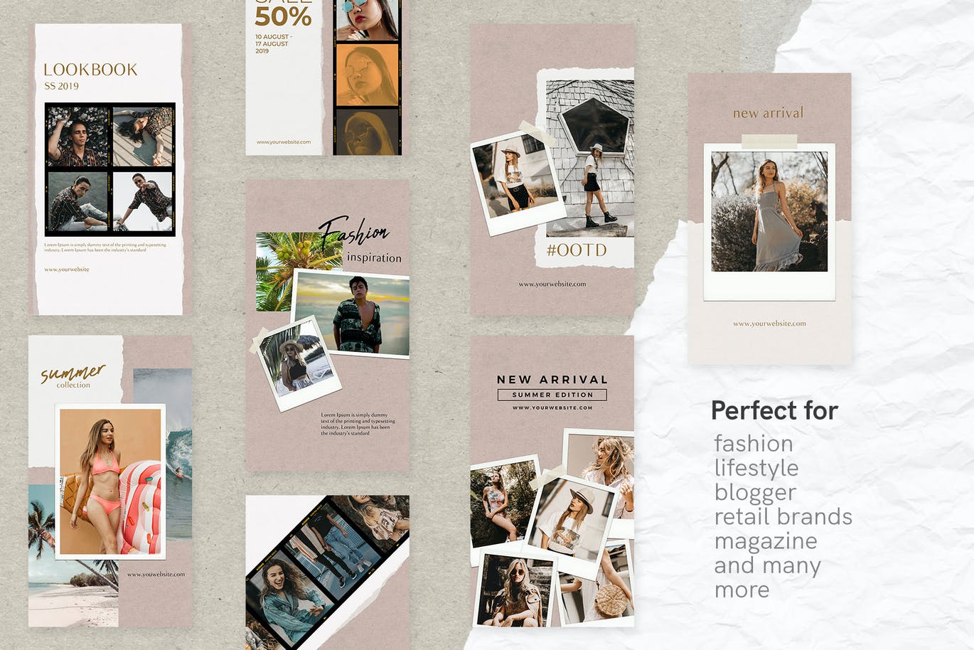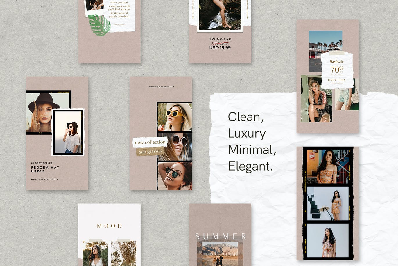 这次老不湿分享的是,高品质的电影框架Instagram社交媒体banner海报设计模板集合-PSD,干净、甜美、温暖,灵感来自宝丽来相框纸,具有简单简约的布局,适合时尚或生活方式品牌,以增加您的 Instagram 影响力。非常适合任何希望在 Instagram 上加强游戏以获得更多关注者和喜欢的人!这套非常容易定制,您只需通过智能对象用您的艺术品/照片替换图像并添加您的文本。这个模板非常适合博主、时尚和零售品牌、杂志等等!