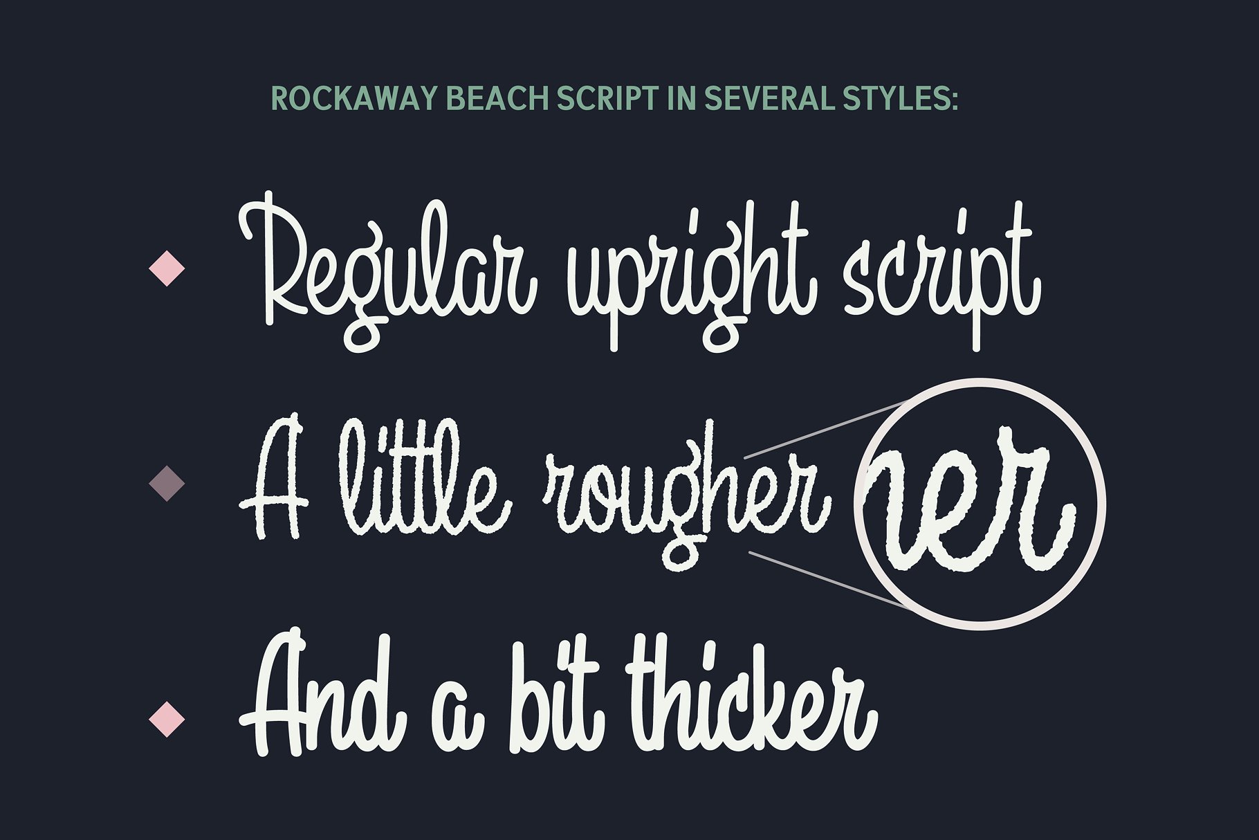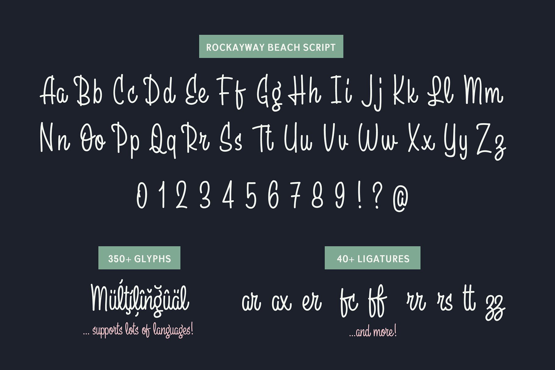 这款字体是一个直立和柔和的复古脚本。一个有弹性的基线,压缩的空间和圆形的形式给这种字体一个友好和手工制作的感觉。拥有350多个象形文字的Rockaway Beach支持基础语言、西欧语言、中欧语言和南欧语言。