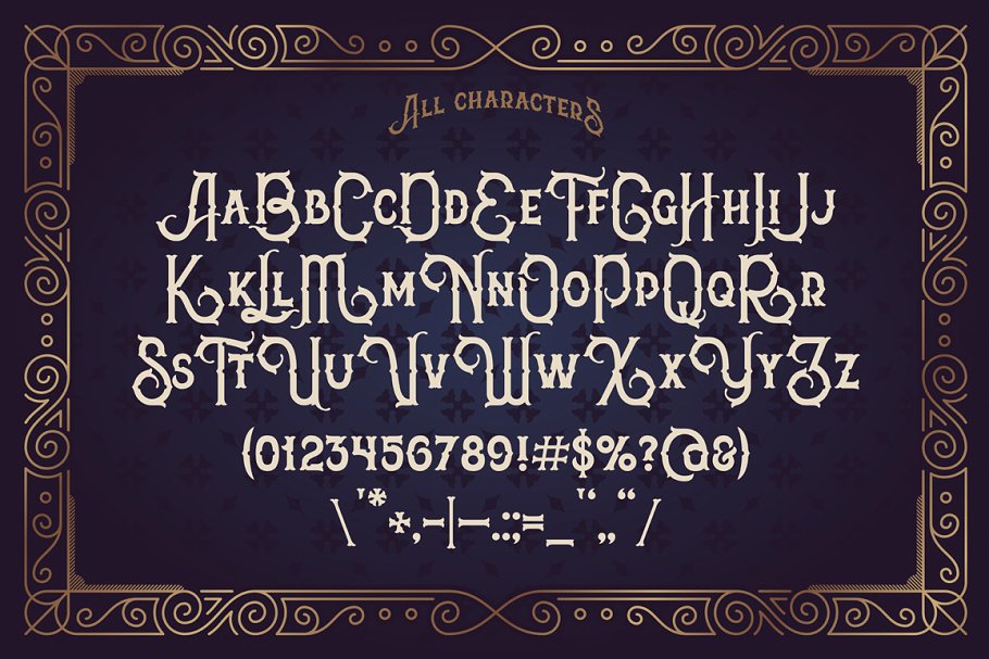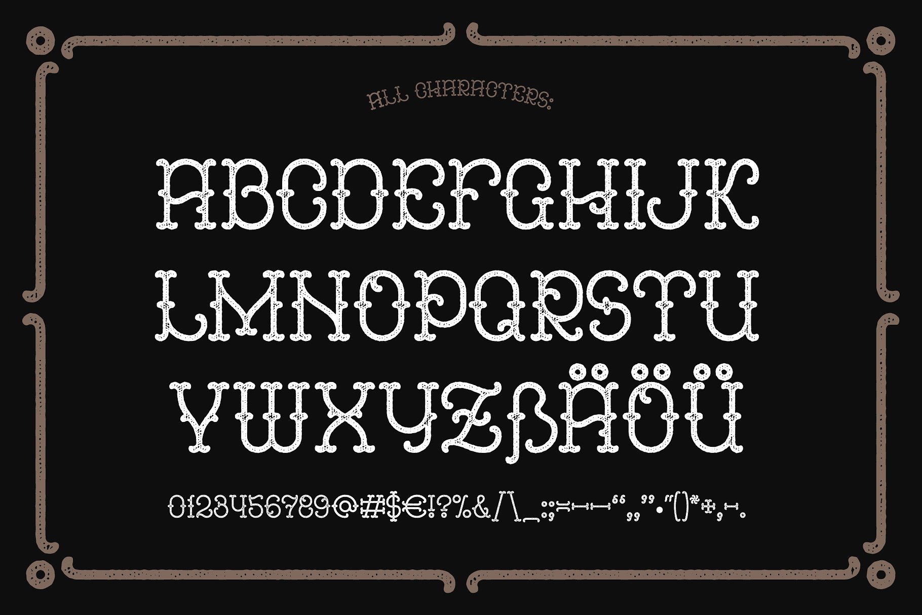 展示遥远王国的复古字体它附带了许多额外的图形,包括城堡插图、装饰框架和矢量图形风格的illustrator。 此外,这种字体还具有OpenType功能,比如样式选择(第5个屏幕截图)。