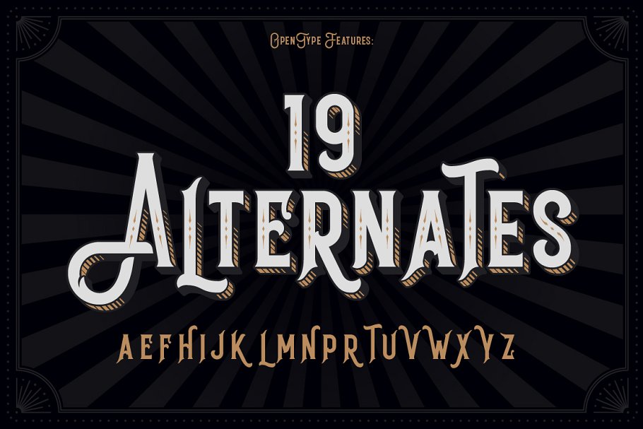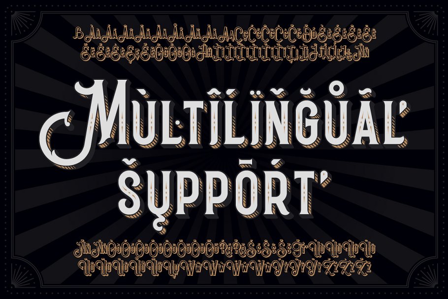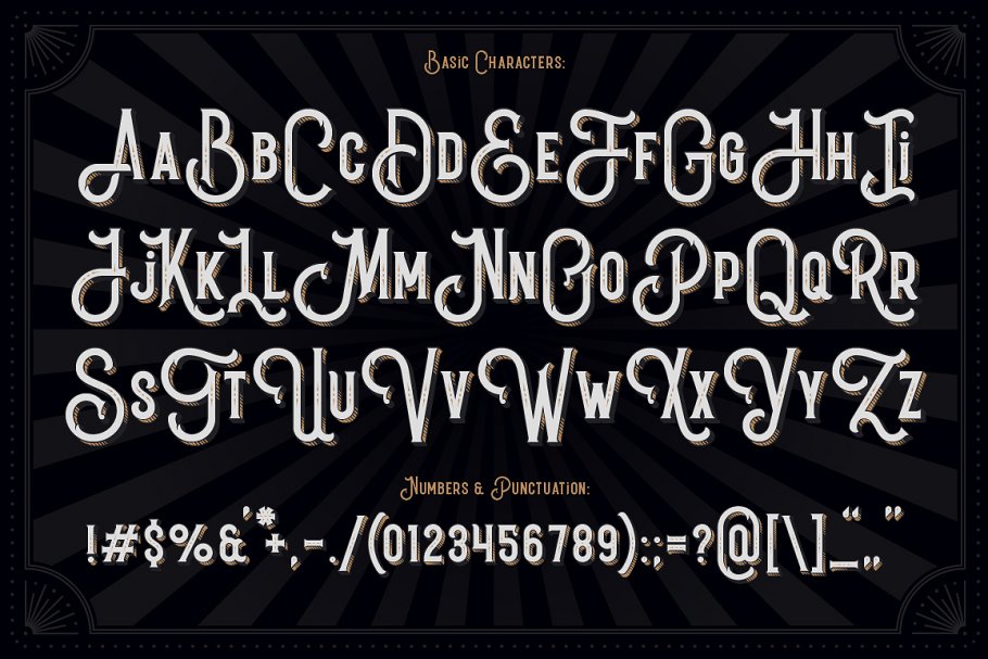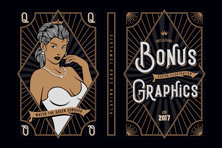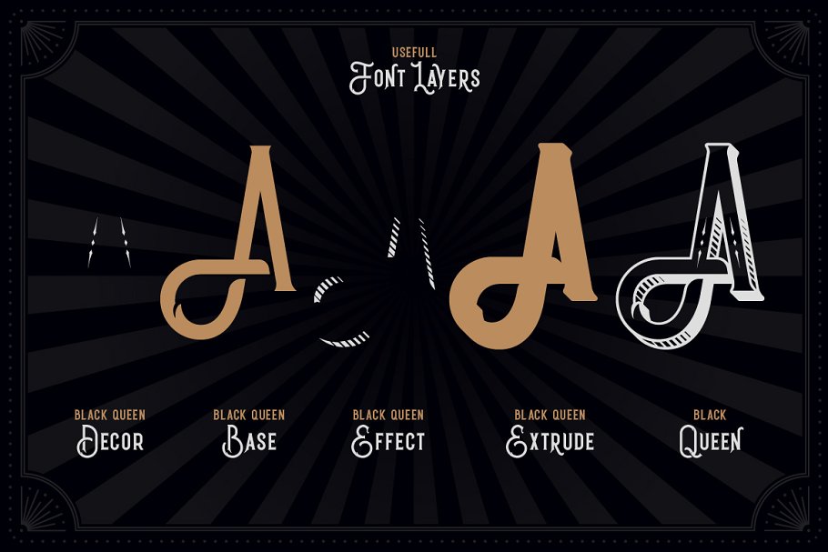 今天呈现一款复古风格的字体”Black Queen”。 它为每个装饰元素包含不同的字体文件,这对于处理颜色和效果非常有用。Black Queen字体有多语言支持和几个侧面的本地字母符号(所有字符你可以看到4-6截屏)。此外,作为额外,你将得到一个女王的矢量插图和标签模板(第三截图)。