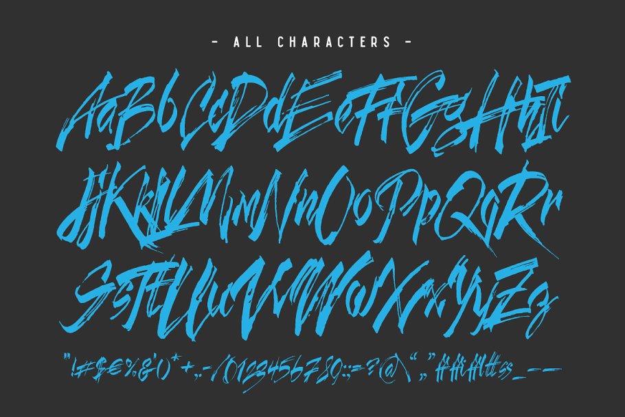 今天介绍一款“龙飞凤舞”的字体,它是用书法笔做成的,风格随意而粗犷。它具有多语言支持和多种连接(所有可用字符都可以在第2和第5屏幕截图中看到)。