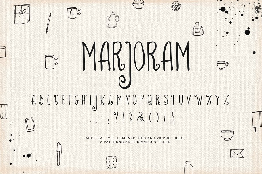Marjoram – 字体和eps, png插图。适用于邀请函、标志、品牌、博客、手工工艺项目、剪贴簿、打印纸项目等等。