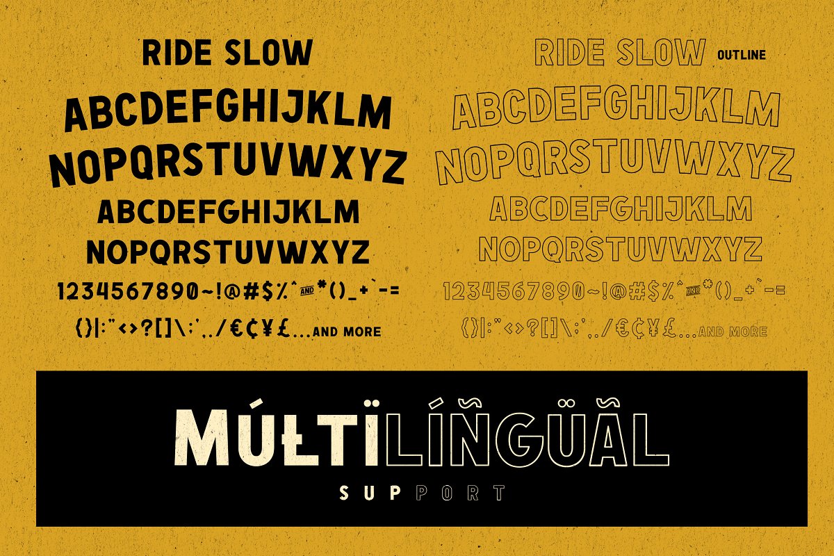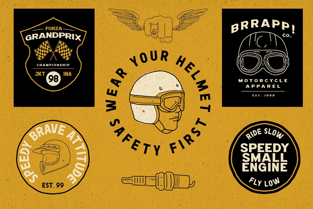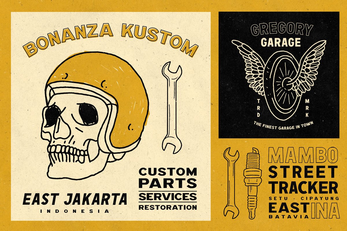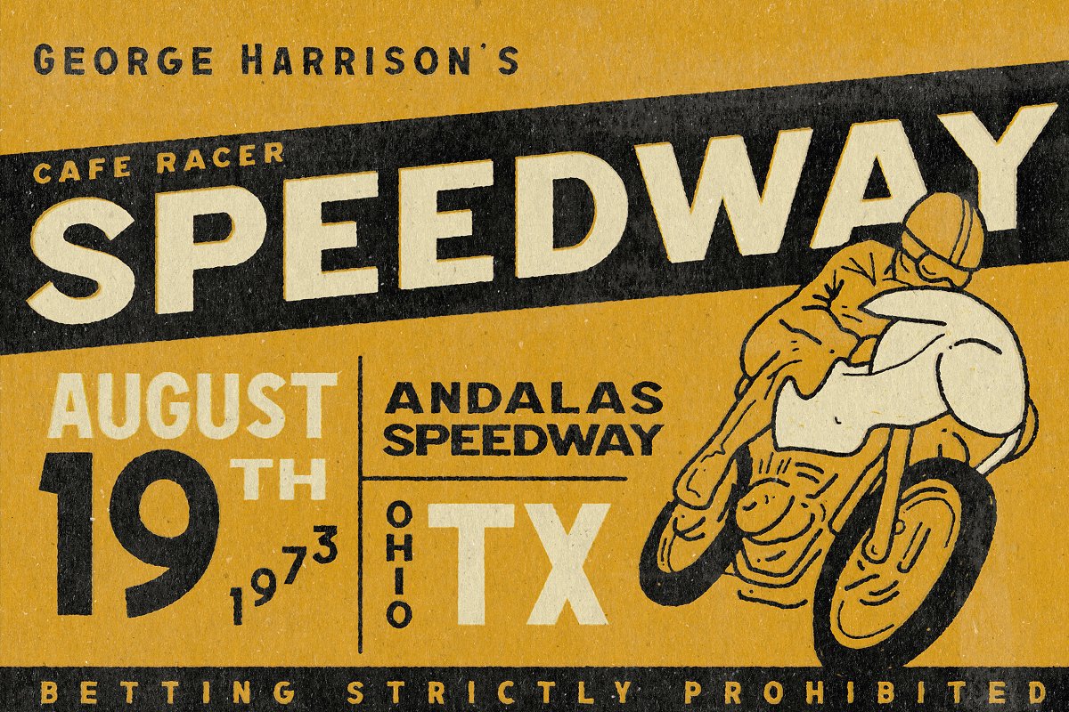 这款字体的灵感来自70年代和80年代的老式摩托车展示和广告。仅仅因为我们非常喜欢经典摩托车,所以决定直奔主题。它包含8种不同的风格加上一个符号插图。完美适合海报设计、标志、复古和复古品牌、摩托车时尚、标志、标签等。