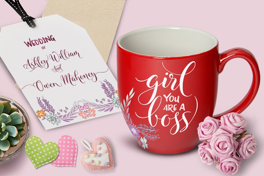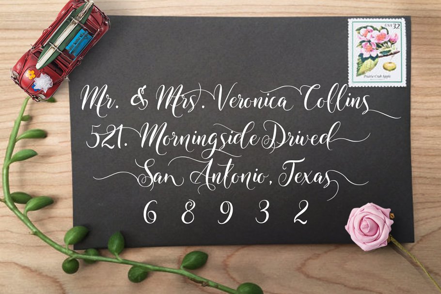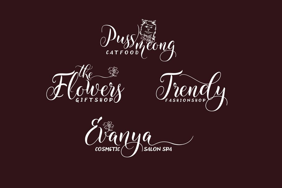 这款手写体拥有现代流畅的线条,尖尖的笔锋,融合了古典与现代的优雅触感。可用于各种用途,如标题、签名、标志、信件、婚礼请柬、信笺、标牌、标签、时事通讯、海报、徽章等。