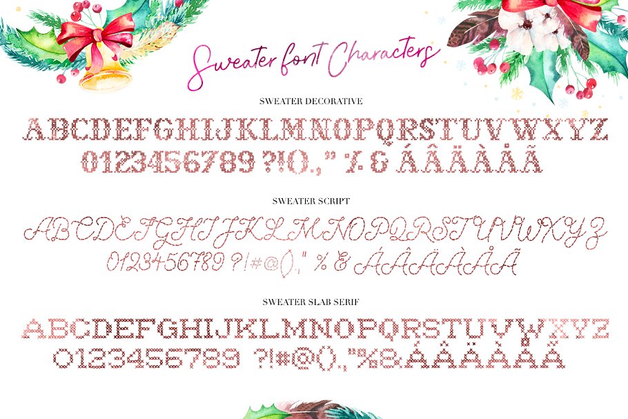 这个字体是一套有“SWEATER”效果的3种字体。 是任何圣诞图形的理想选择,如邀请函、礼品卡、facebook标题、圣诞促销、衬衫、墙纸等。您可以将其用于个人用途,也可以用于商业项目。