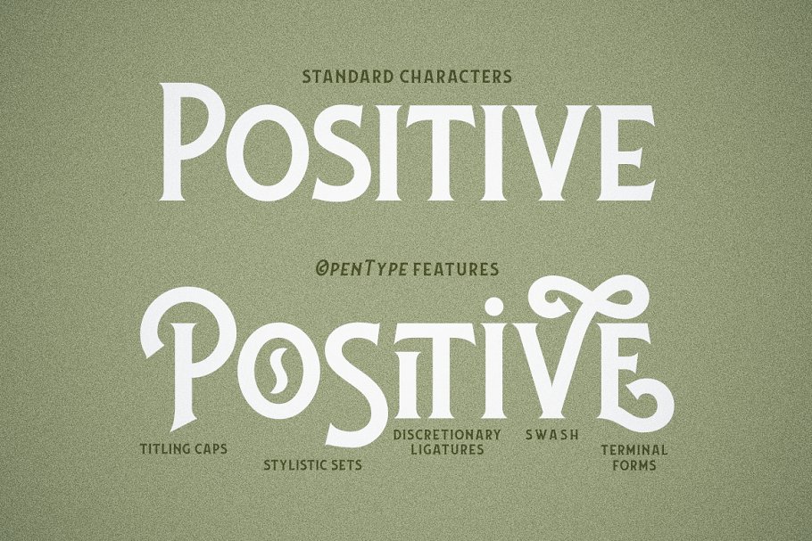 PS:您需要一个支持Opentype Features的软件来探索这种字体的全部功能,例如Adobe Photoshop,Adobe Illustrator,Corel Draw,Inkscape等。对于Photoshop CC和Illustrator用户,您可以通过Glyphs面板访问这个强大的功能窗口,只需阻止并双击您想要使用的所需字母即可开始使用。您也可以通过字符映射(Windows)和字体(Mac)访问这些“隐藏字符”,因为此字体已经过PUA编码。