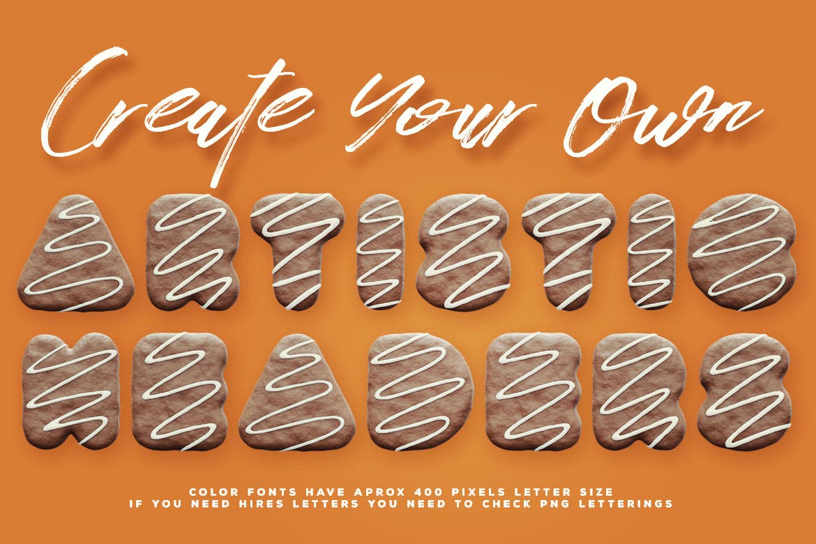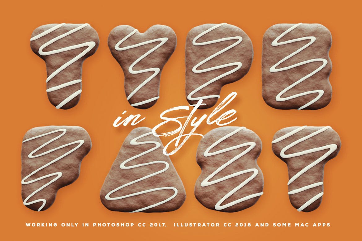 这次老不湿分享的是,可爱个性的时尚巧克力蛋糕装饰效果的英文字体,颜色或SVG opentype字体 – 仅适用于Photoshop CC 2017 +,Illustrator CC 2018和一些Mac应用程序!