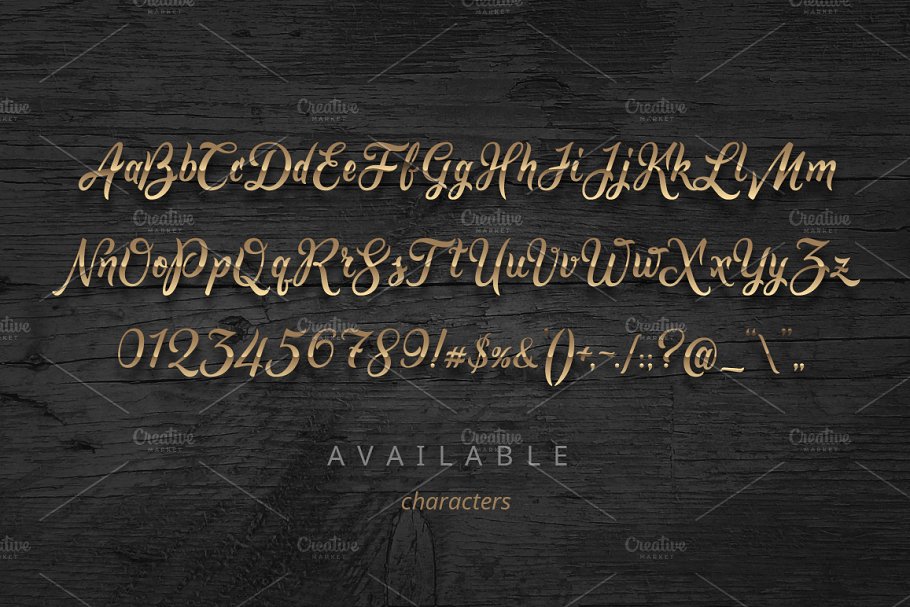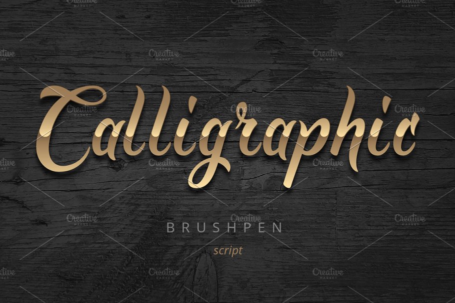 今天介绍一款金色笔刷字体。它是基于手工书法加上一个漂亮的金色光泽的效果。它由两个字体文件组成:一个用于基本字体,另一个用于突出显示形状。你可以找到一个样品。包含可编辑文本对象(层)的ai和sample.psd文件。