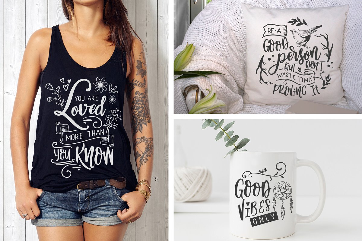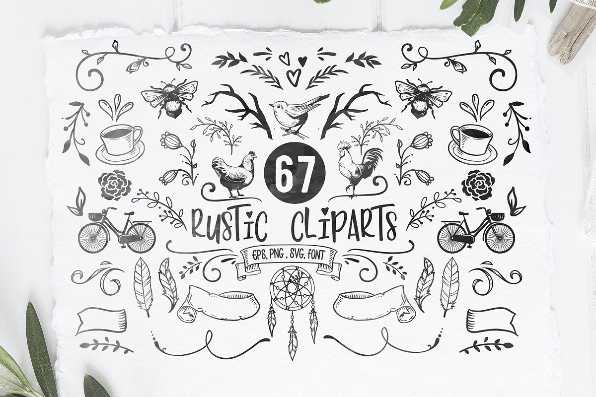 这款字体套装包含3种互补字体和一个包含乡村插图的额外字体。它包括许多你可以使用的替代字形和许多字体格式的剪贴画以及EPS,PNG和SVG文件。可用于T恤设计、马克杯设计、标志等设计。