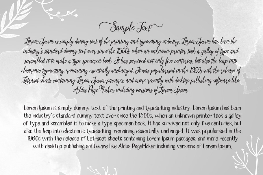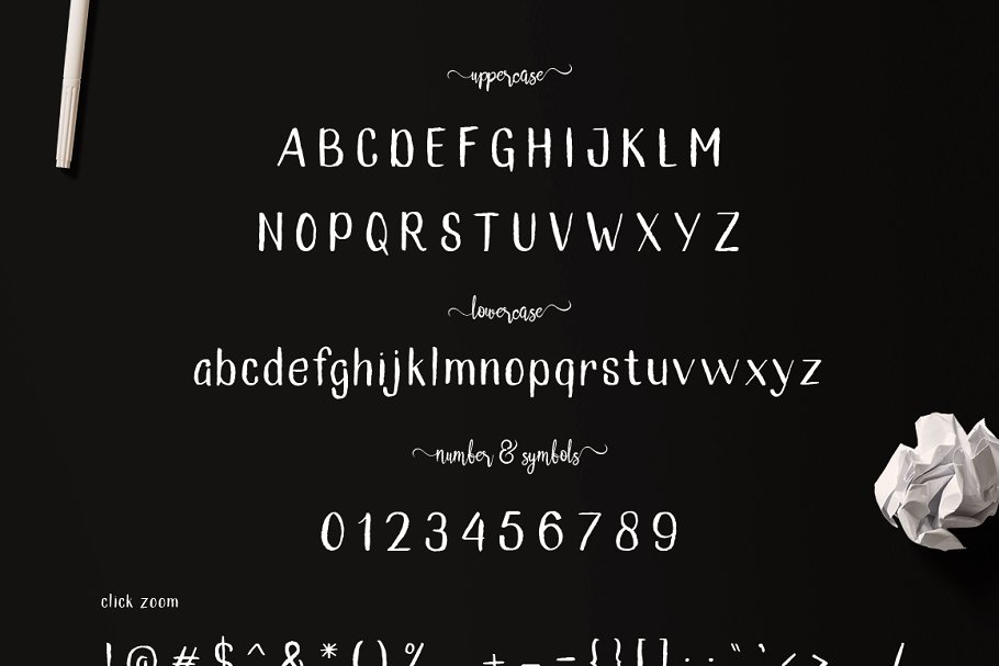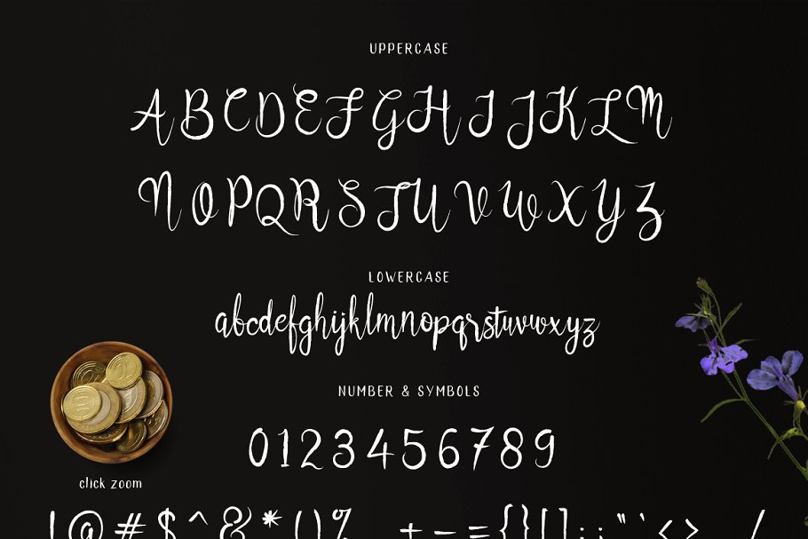 小字体(例如:12pt字母)看起来仍然很好读。较大的字体将显示这个笔刷字符的大量细节。这种字体包含两种格式,比如OTF (Open Type)和TTF (True Type)。不仅如此,在这个字体包中,您还可以在常规字符旁边获得该字体的斜体字符。