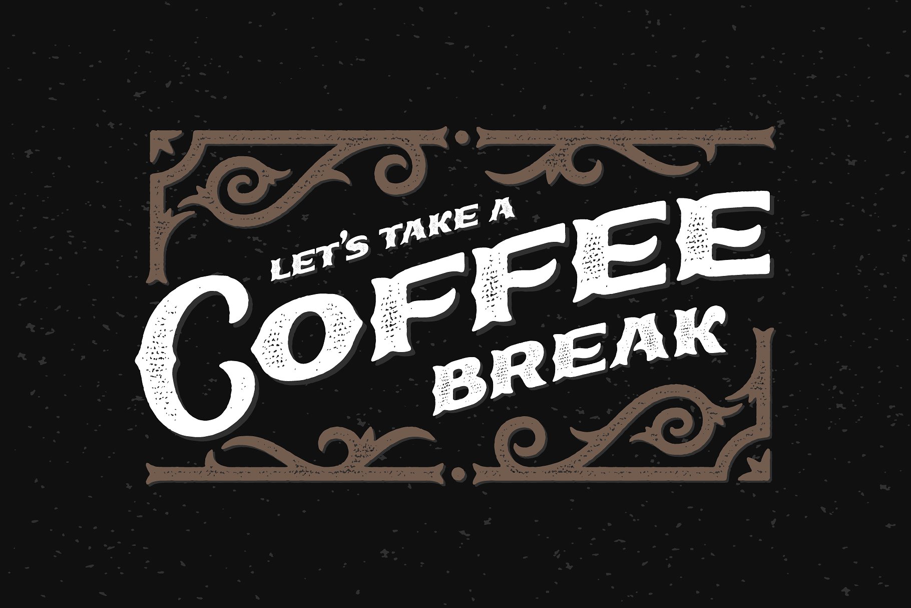 今天呈现一款复古蒸汽朋克风格的字体,名为“True Black”。它有干净和纹理粗糙的版本。此外,你将得到一个装饰华丽的矢量额外。在里面你会发现一张矢量海报,上面写着 “Let’s take a coffee break”。