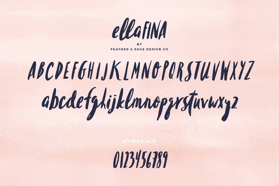 今天介绍 Feather & Sage设计的Ellafina笔刷字体! 一个有趣的滑稽多用途的笔刷字母脚本字体与自定义字母。Ellafina笔刷字体包含1种样式,另外还有一个单独的“附加”字体文件,其中包含52个单独的手绘元素,可以使用大小写字母和数字键轻松访问。