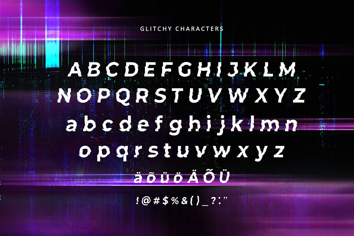 Glitch字体具有轻微的计算机朋克风格,非常适合各种未来派设计。