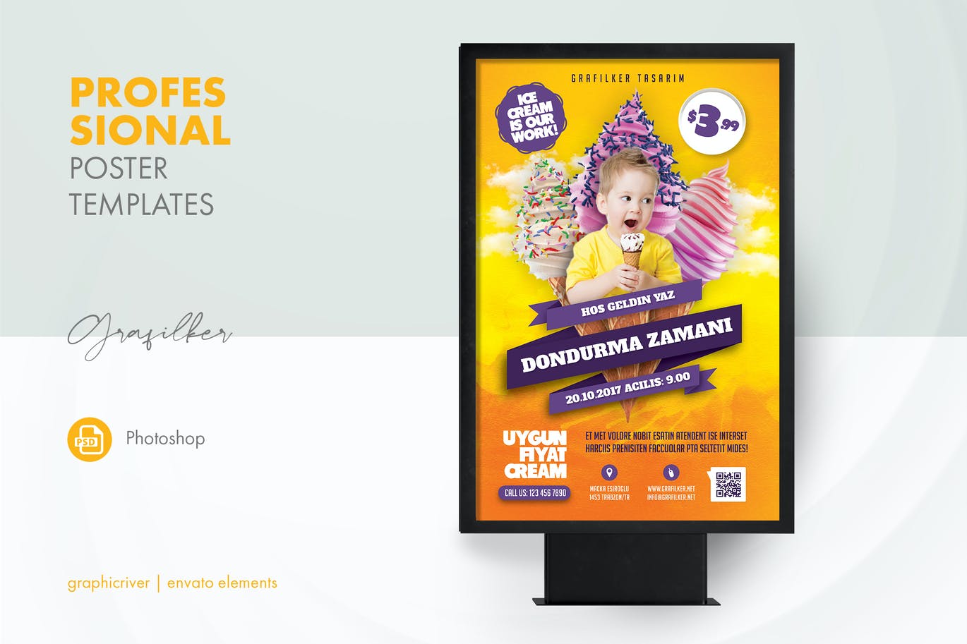 这次老不湿分享的是,时尚清新可爱的冰淇淋儿童节海报设计模板,完全分层的 PSD。